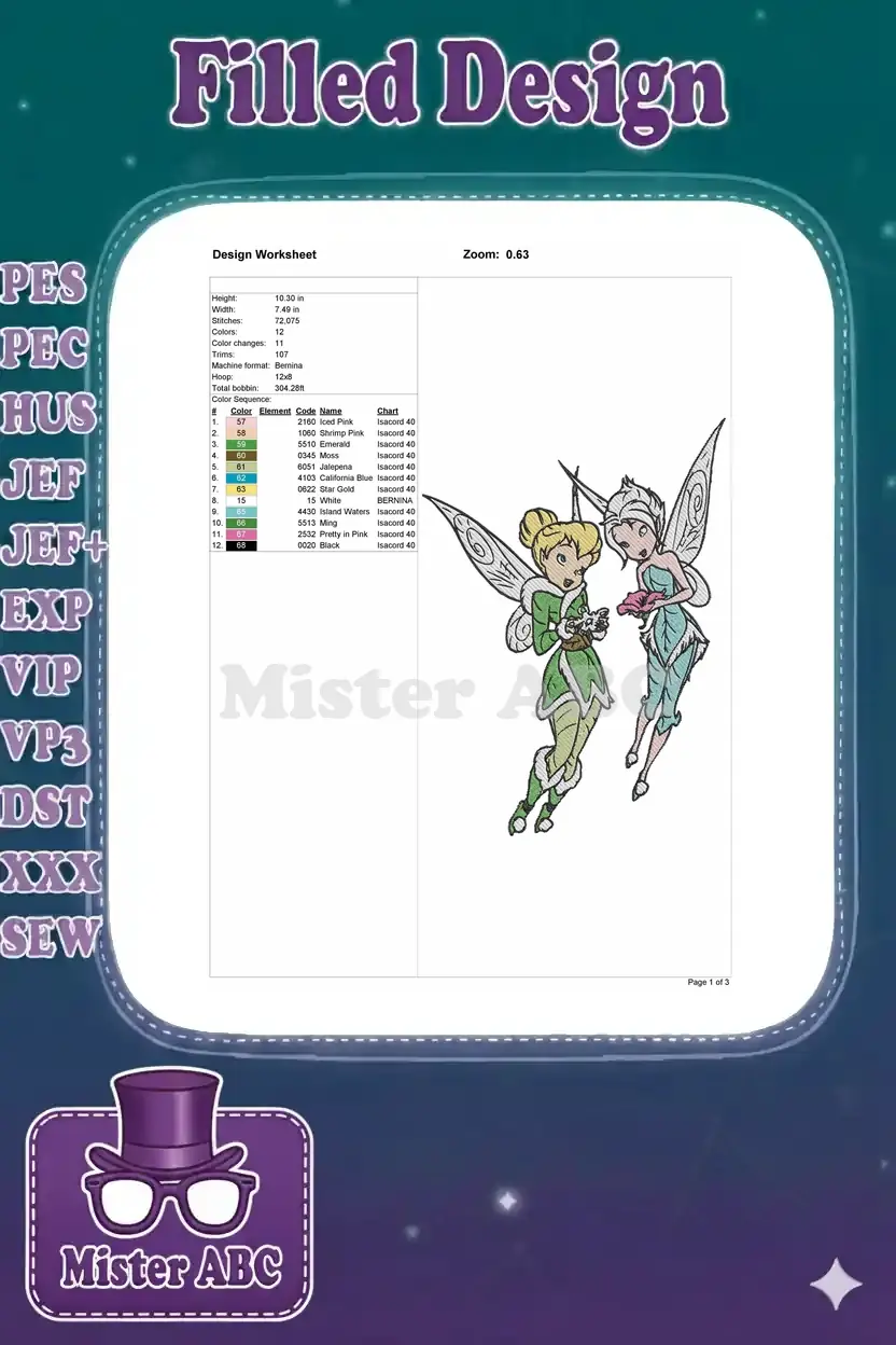 Bring the magic to life with this enchanting embroidery design featuring Tinkerbell and Silvermist. Perfect for fans!