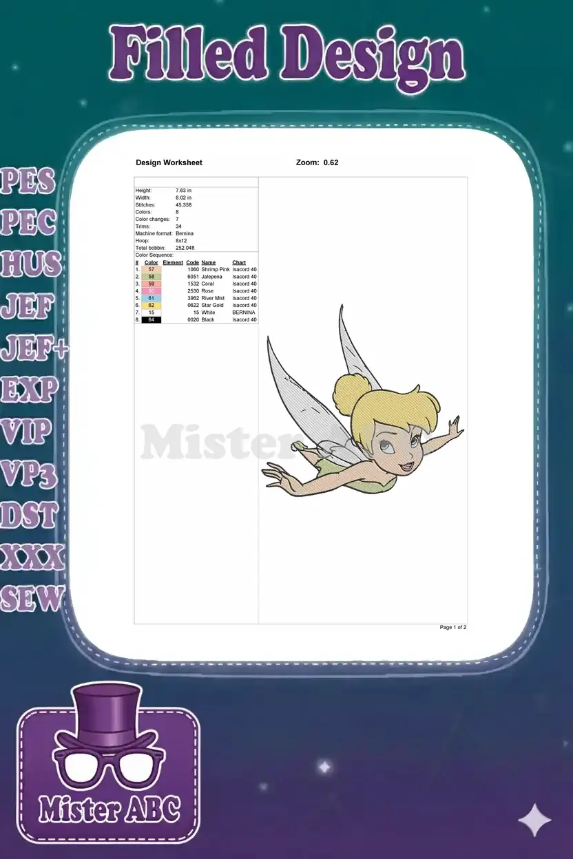 Tinkerbell Flying Fairy Disney Character Embroidery Designs