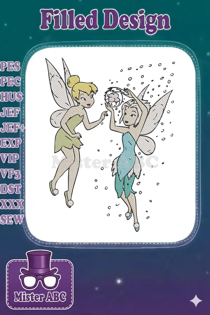 Tinkerbell and Periwinkle winter magic fairy embroidery designs