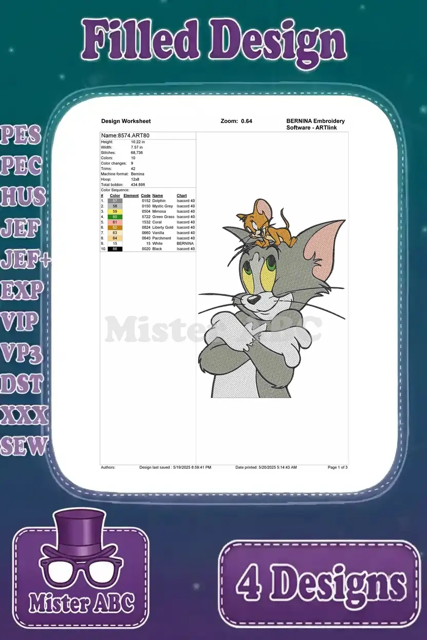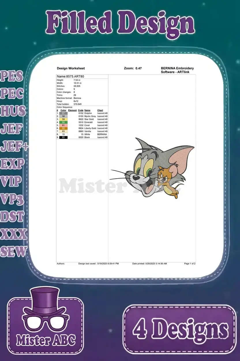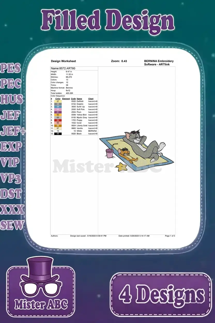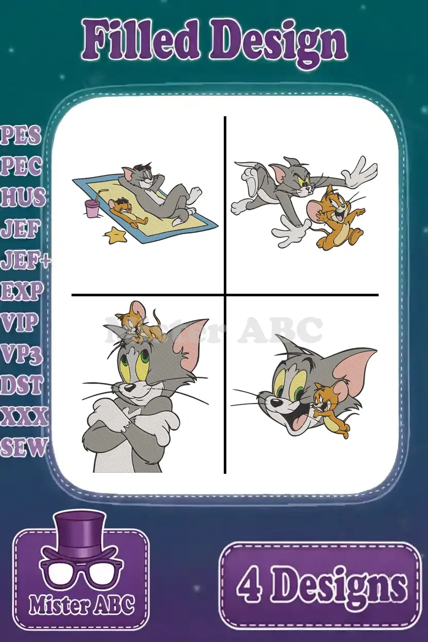 Tom And Jerry – Classic Cat And Mouse Duo – Beach Relaxation And Chasing Fun – Coon Legends – Filled Embroidery Design