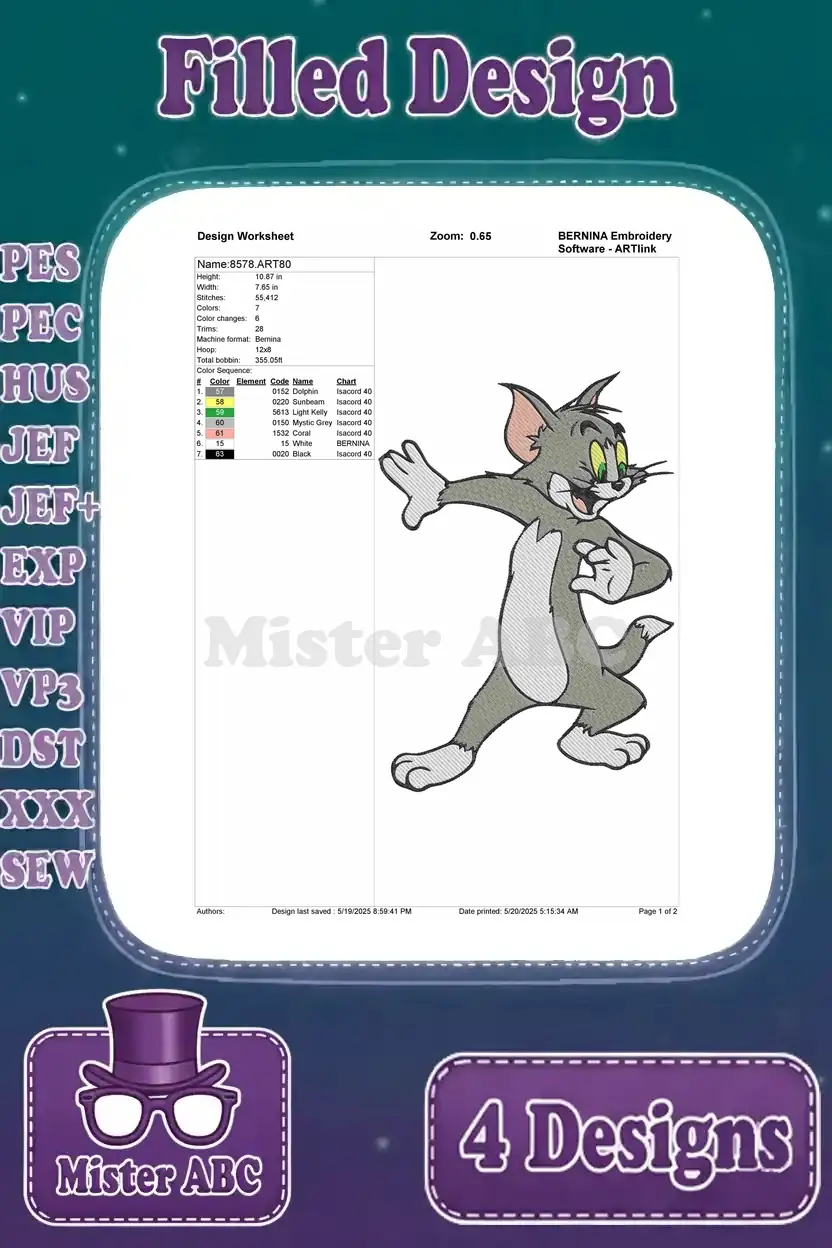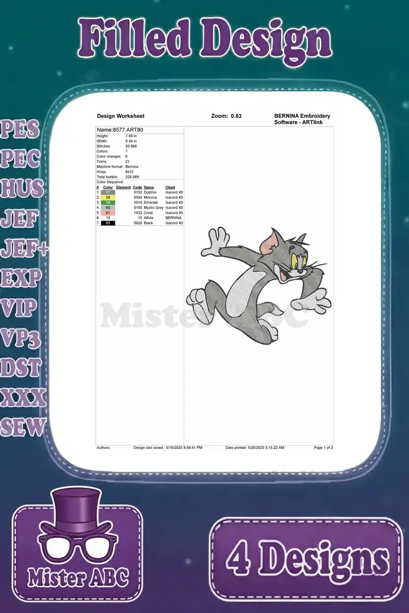 Tom And Jerry – Tom Cat And Jerry Mouse – Iconic Poses And Expressions – Coon Rivalry – Filled Embroidery Design