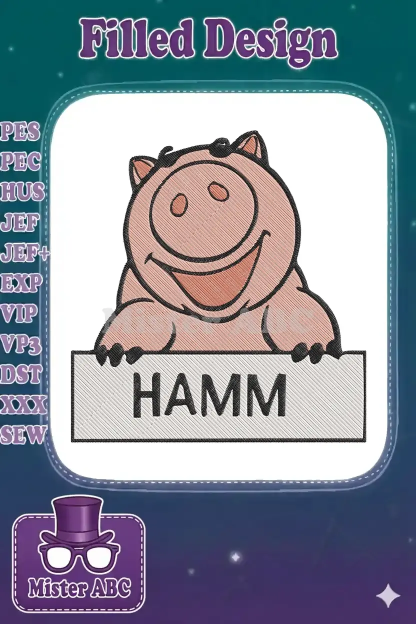Toy Story Hamm the pig smiling cartoon embroidery designs