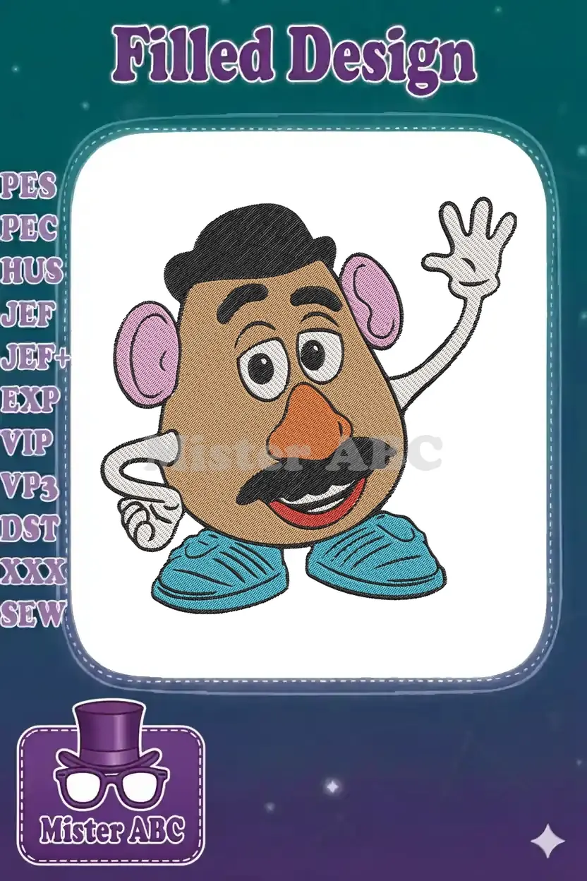 Toy Story Mr Potato Head waving cartoon character embroidery designs
