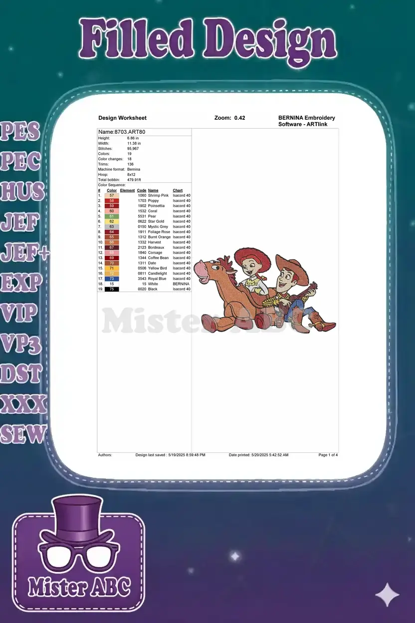 Toy Story Woody Jessie Bullseye playing guitar embroidery designs