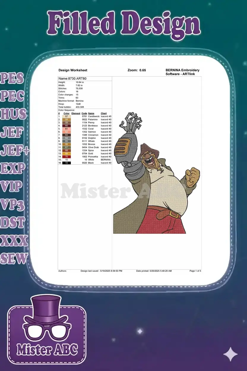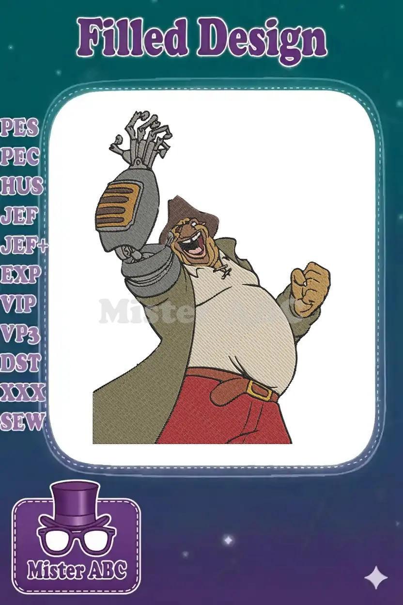 Treasure Planet John Silver pirate character robotic arm embroidery designs