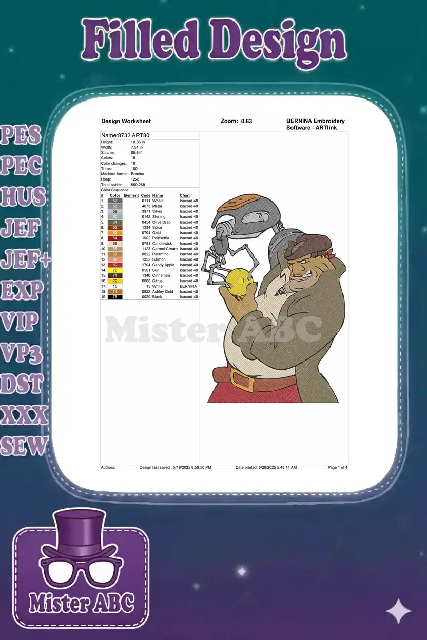Treasure Planet John Silver robotic arm holding orb embroidery designs