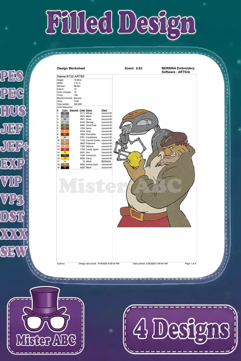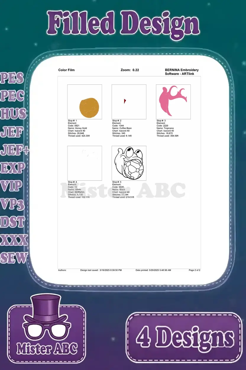 Tweenies Milo Purple Character Fizz Yellow Bella Blue Jake Green Kids Show Collection – Filled Embroidery Design