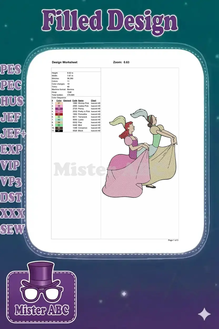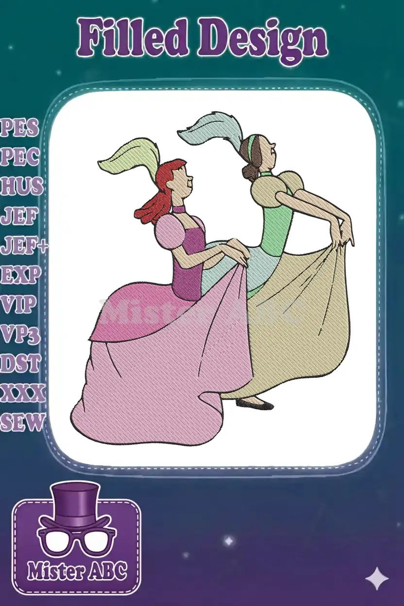 Two Elegant Can-Can Dancers Women Theatrical Embroidery Designs