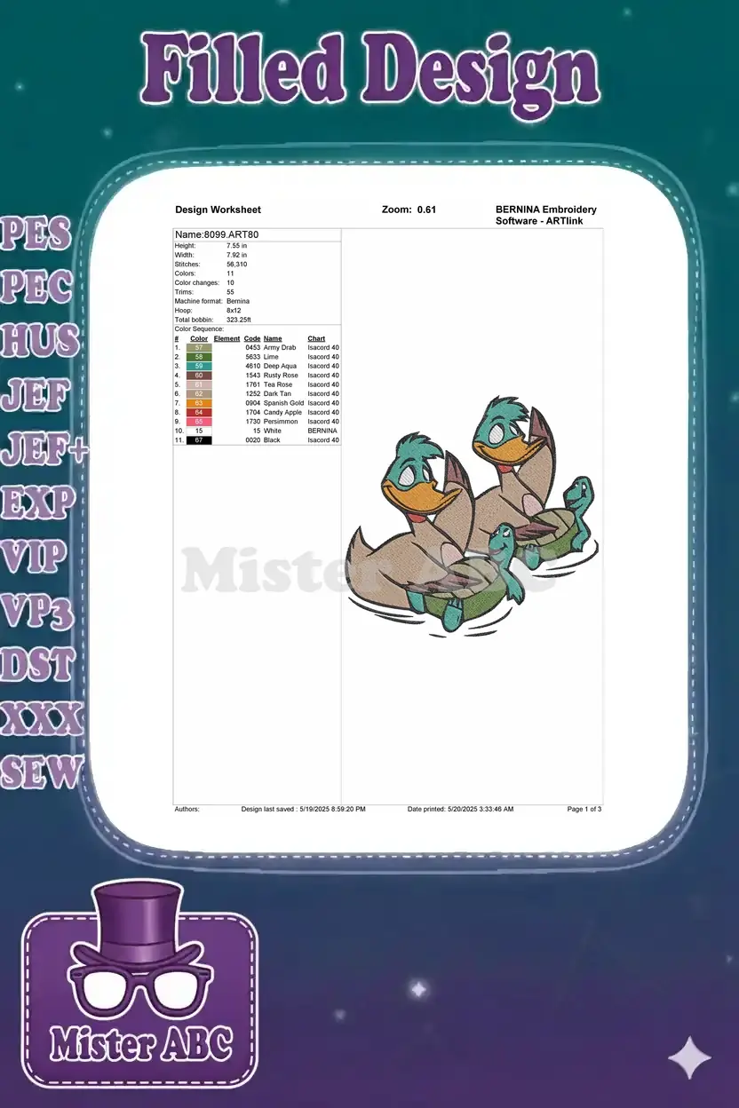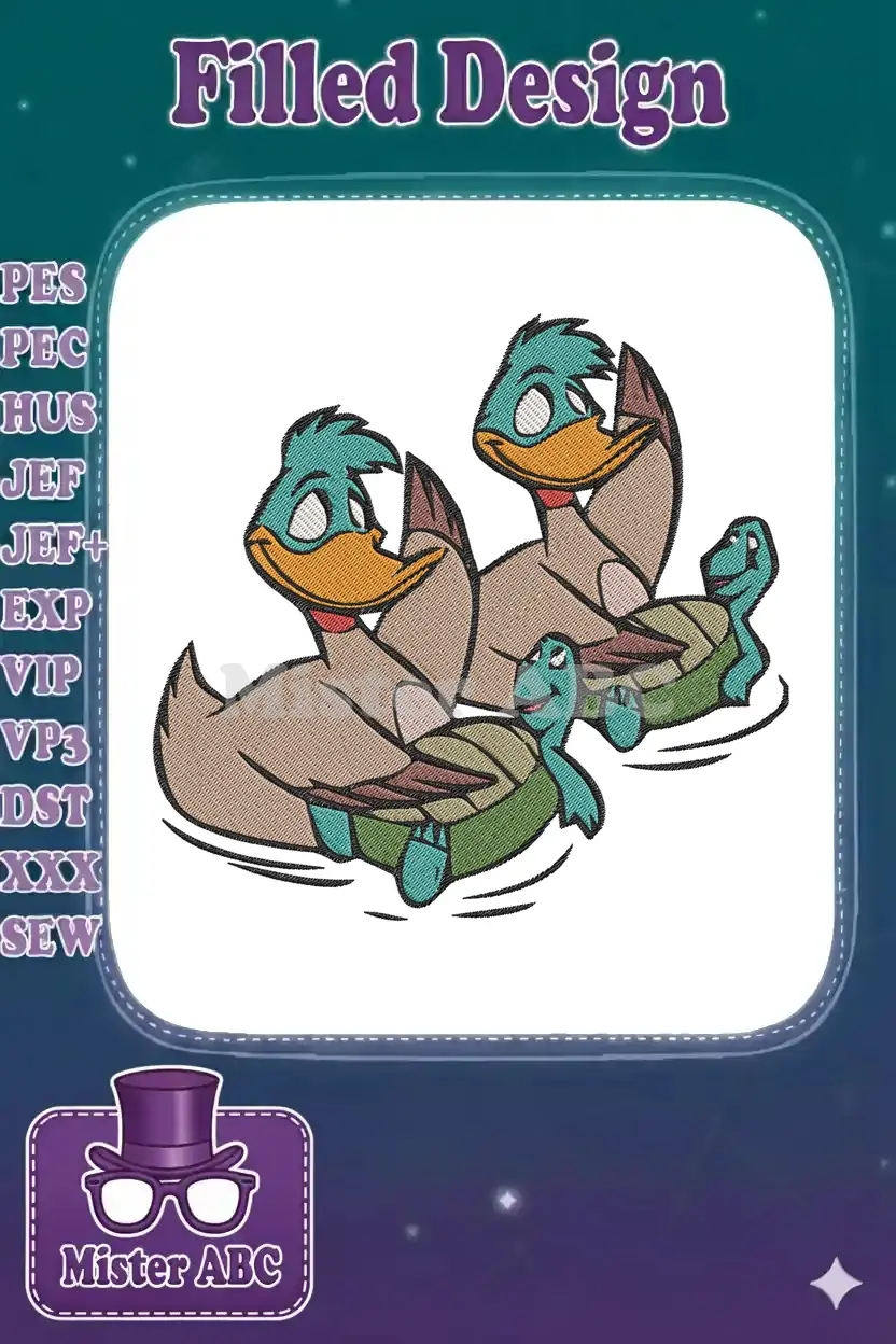 Two happy cartoon ducks and turtles swimming embroidery designs - Instant Download Two happy cartoon ducks and turtles swimming embroidery designs – Instant Download