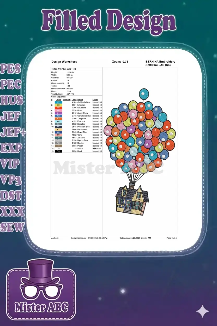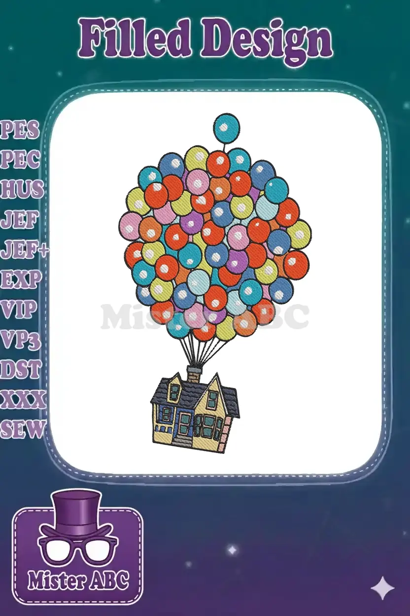 Up Movie Inspired Floating House Colorful Balloons Embroidery Designs