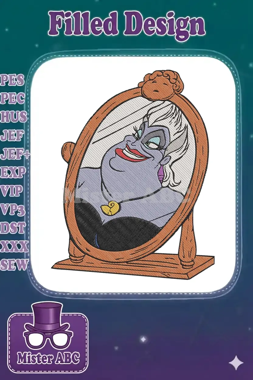 Ursula the Sea Witch in Mirror Reflection Embroidery Designs