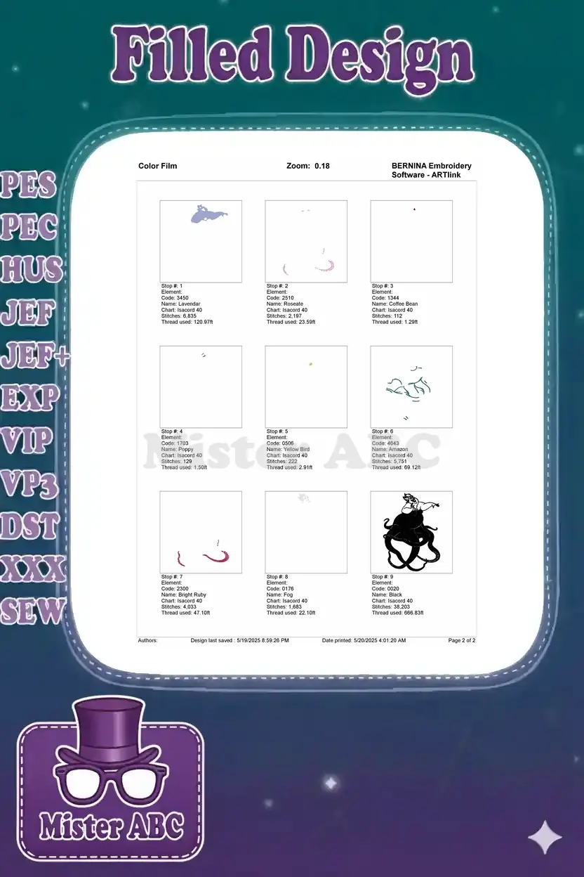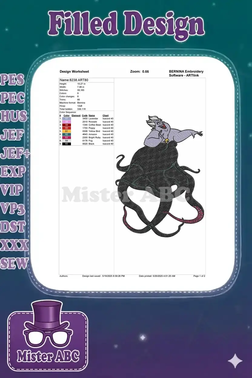 Ursula Sea Witch Octopus Villain Character Embroidery Designs