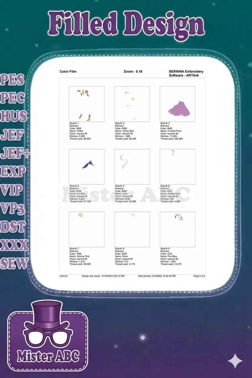 | Stitches | Colors | Thread Changes |