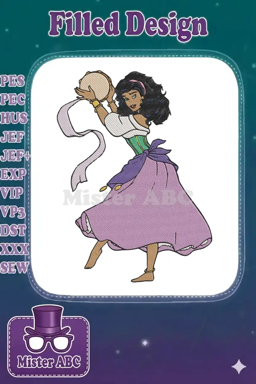 Vibrant Gypsy Dancer Esmeralda with Tambourine Embroidery Designs