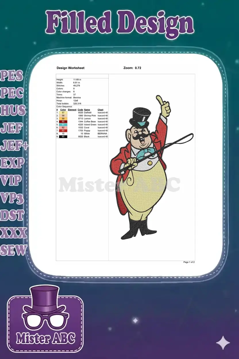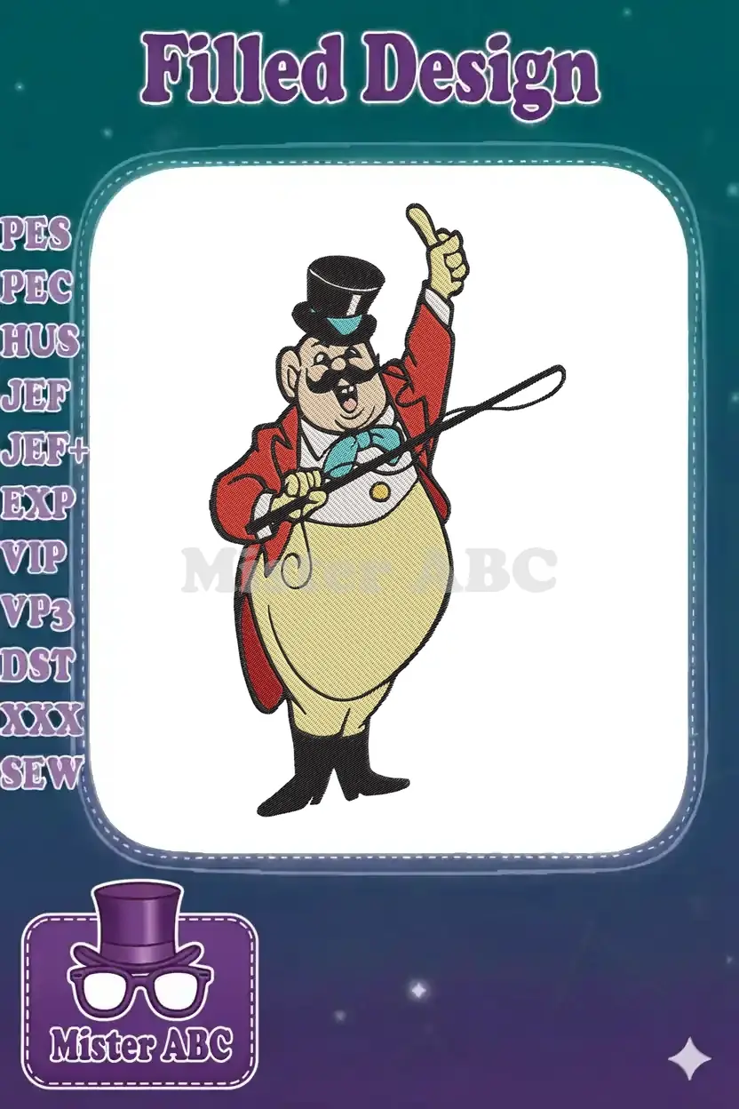 Bring the magic of the big top to your projects with this vibrant ringmaster embroidery design. A classic circus icon, perfect for any fan!