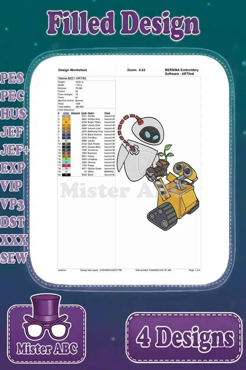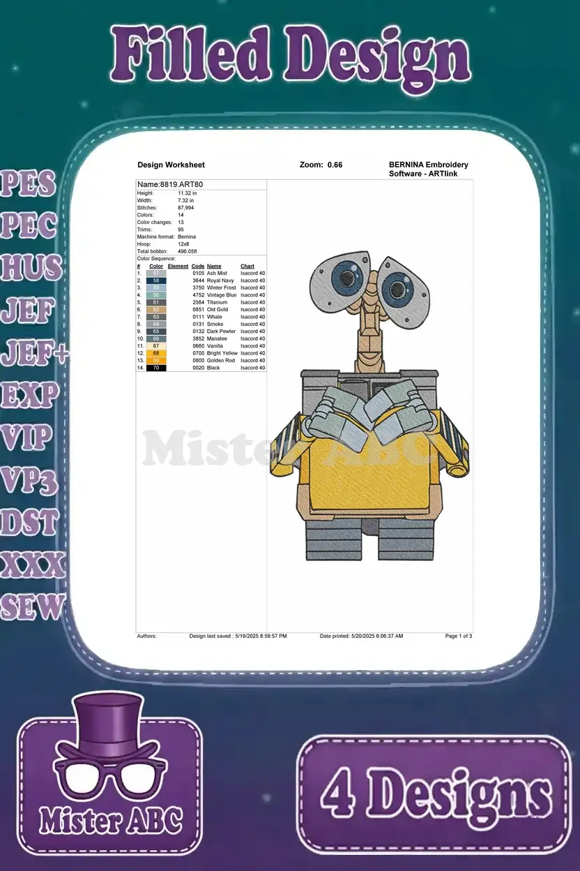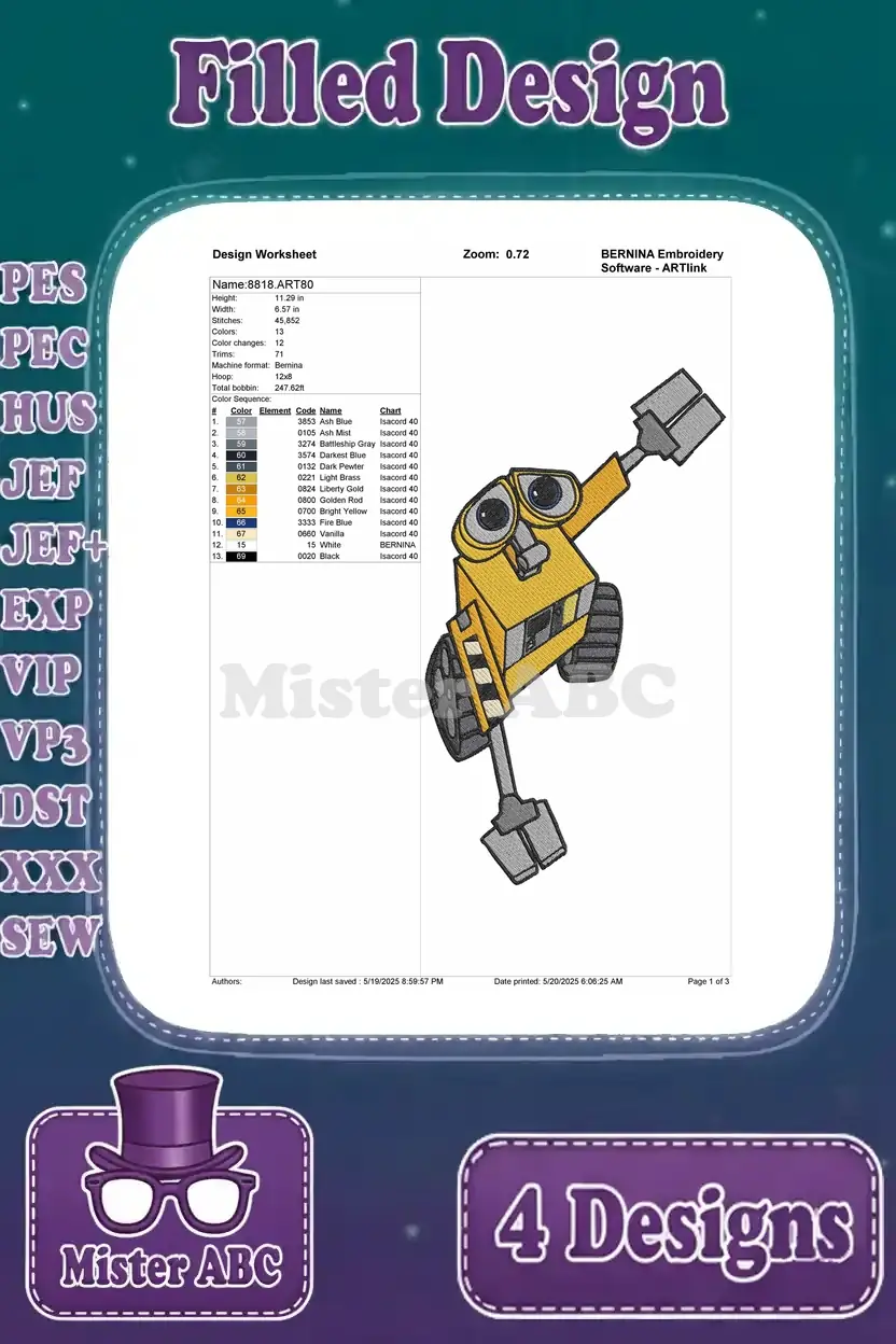 Wall E Robot With Fire Extinguisher Christmas Lights And Various Cute Poses – Filled Embroidery Design