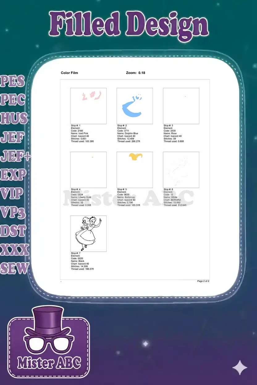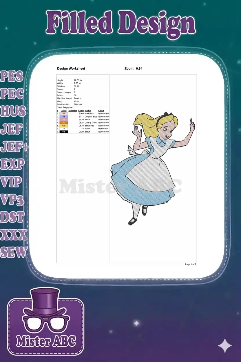 Whimsical Alice in Wonderland character embroidery designs for sewing projects