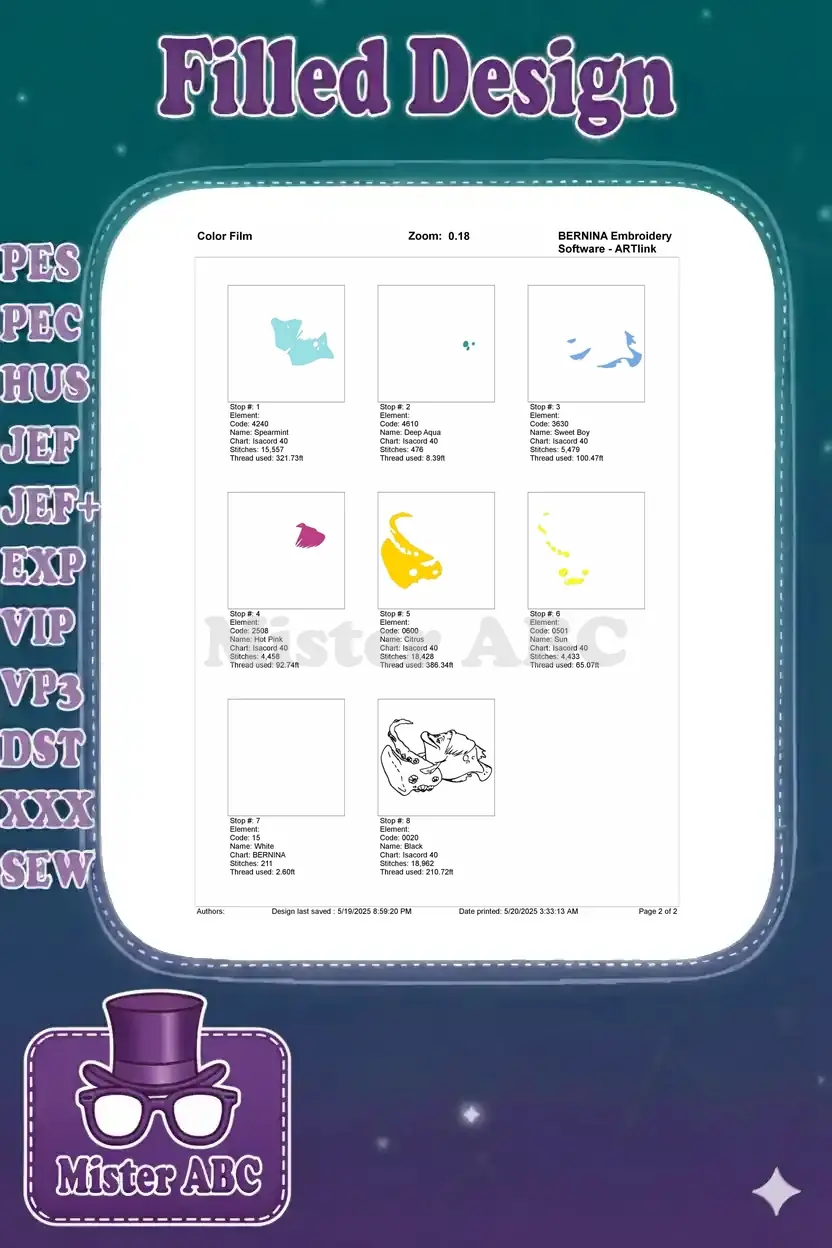| Stitches | Colors | Thread Changes |