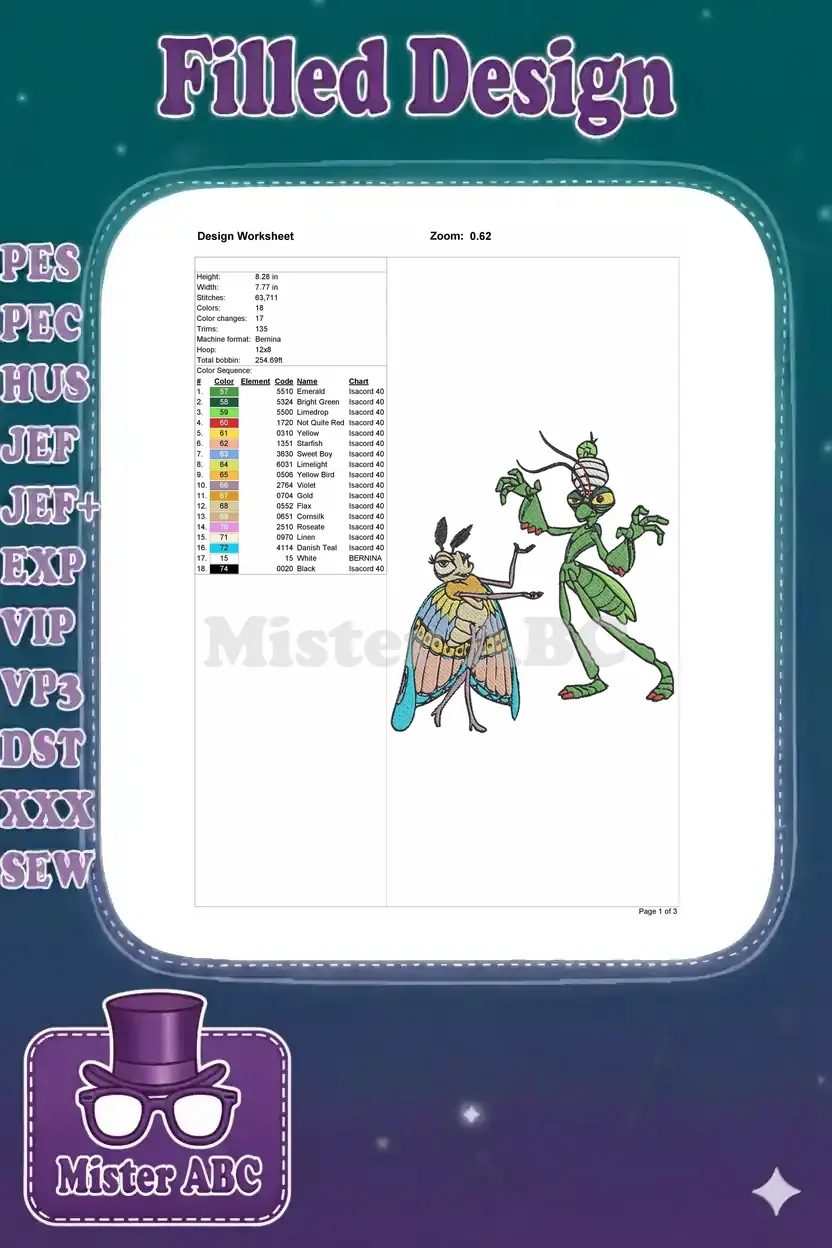 Bring the charming duo of beloved insect characters to your projects with this vibrant embroidery design. Perfect for fans!