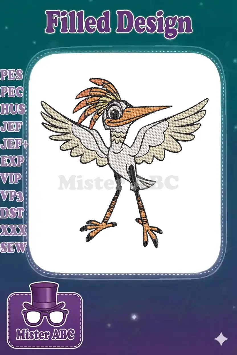 Whimsical cartoon roadrunner bird with spread wings embroidery designs