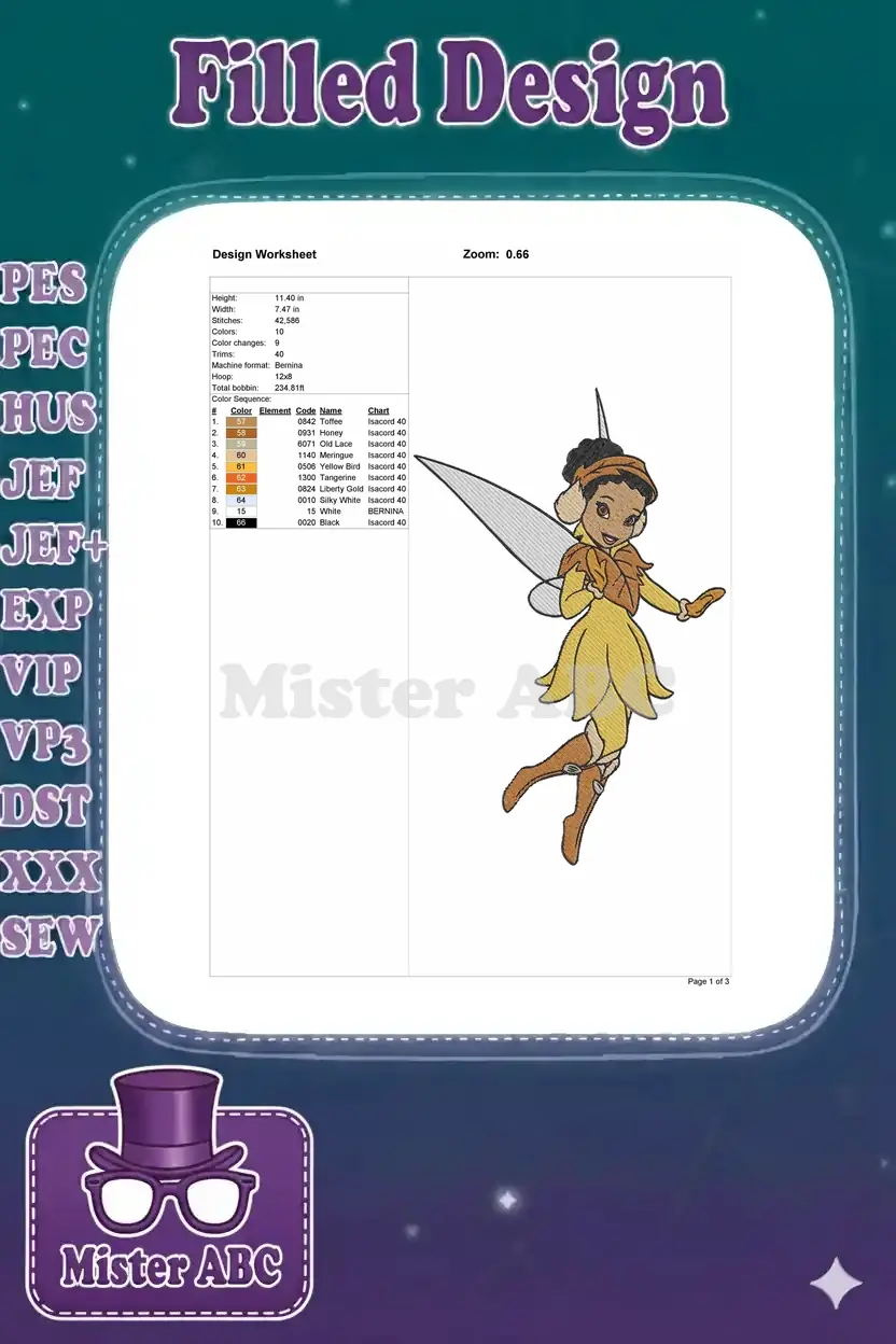 Whimsical Dark Skinned Fairy with Leaf Dress and Wings Embroidery Designs