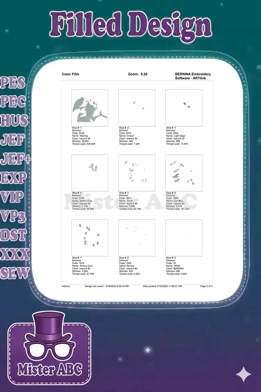 | Stitches | Colors | Thread Changes |