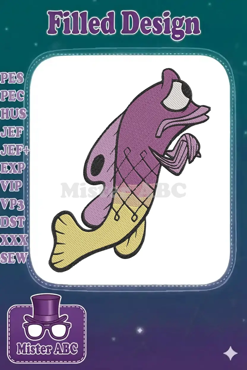 Whimsical Purple Yellow Cartoon Fish Embroidery Designs for Aquatic Projects