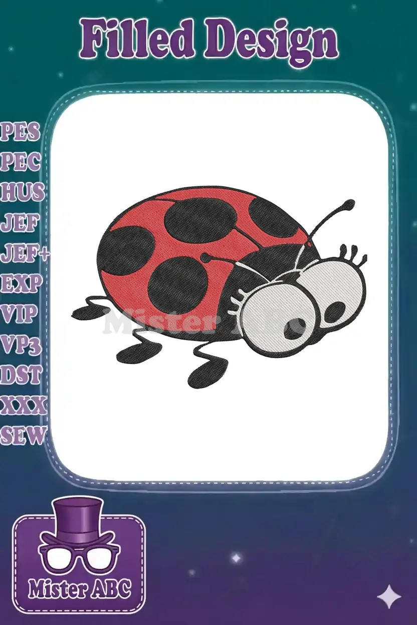 Whimsical red and black cartoon ladybug insect embroidery designs