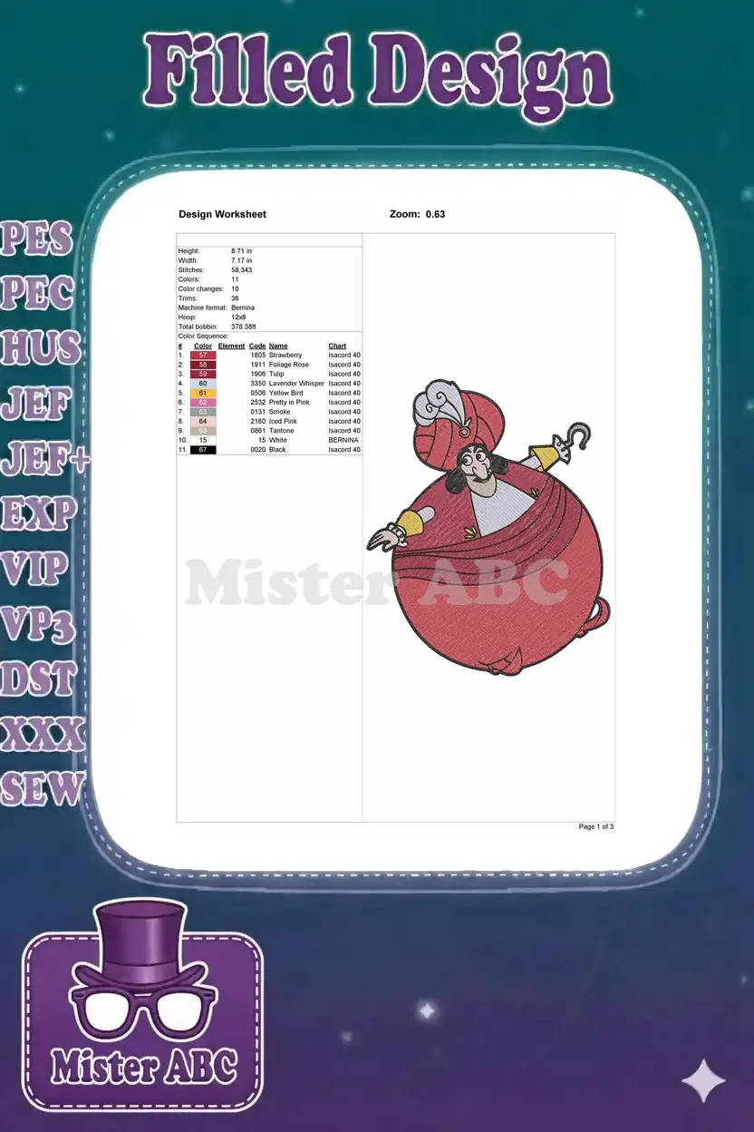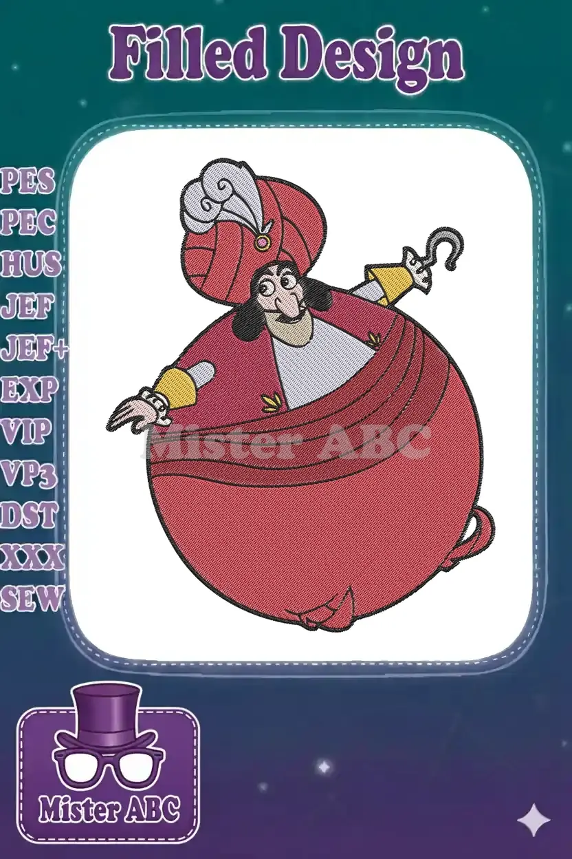 Whimsical Round Captain Hook Pirate Villain Embroidery Designs