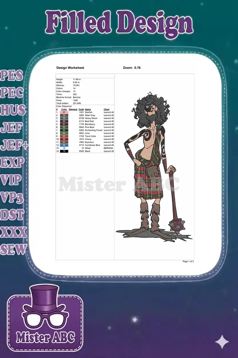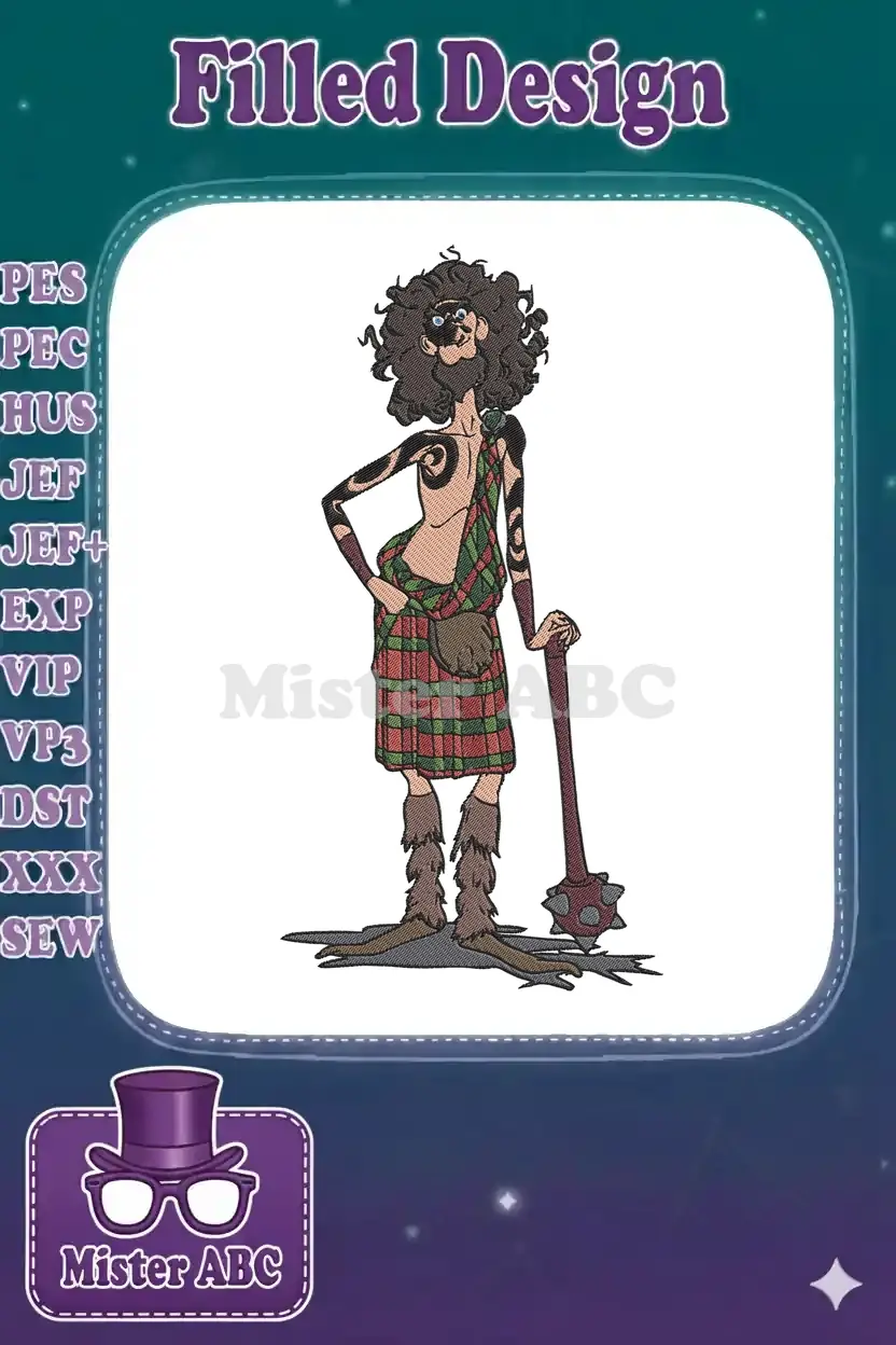 Wild Man with Kilt and Club Tribal Tattoo Embroidery Designs