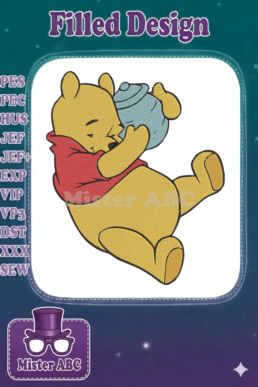 Winnie the Pooh Bear Drinking Honey Pot Embroidery Designs
