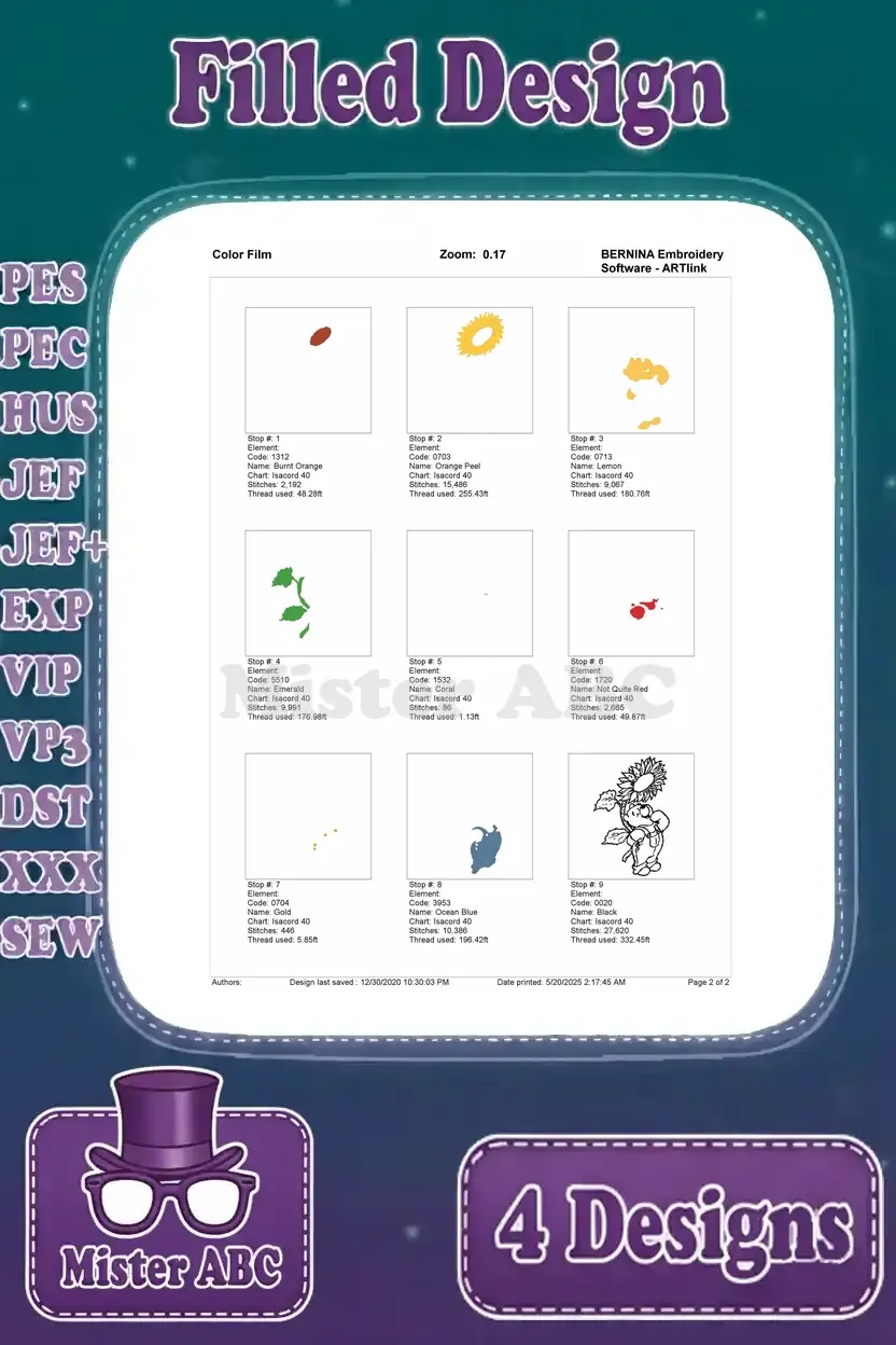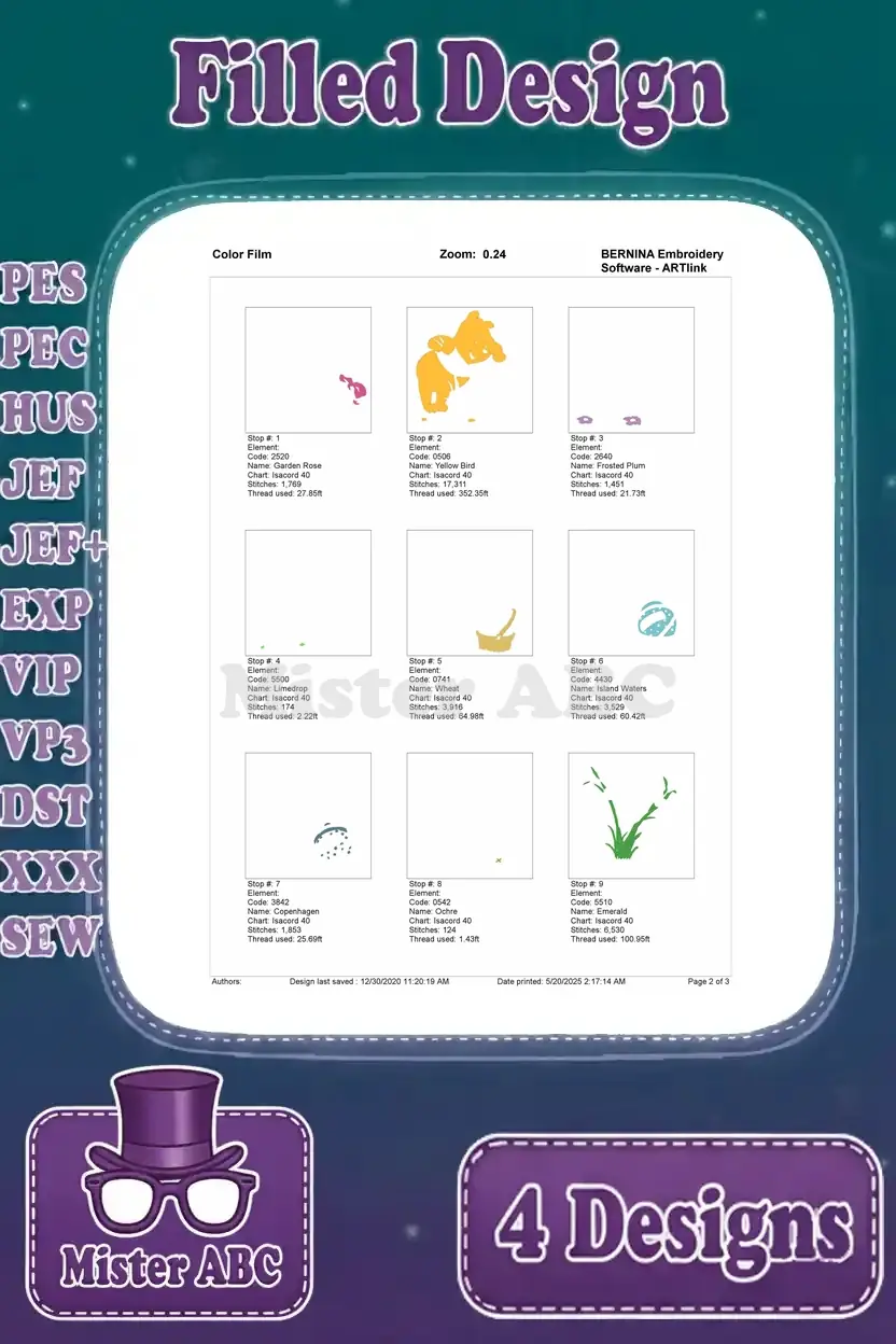 | Stitches | Colors | Thread Changes |