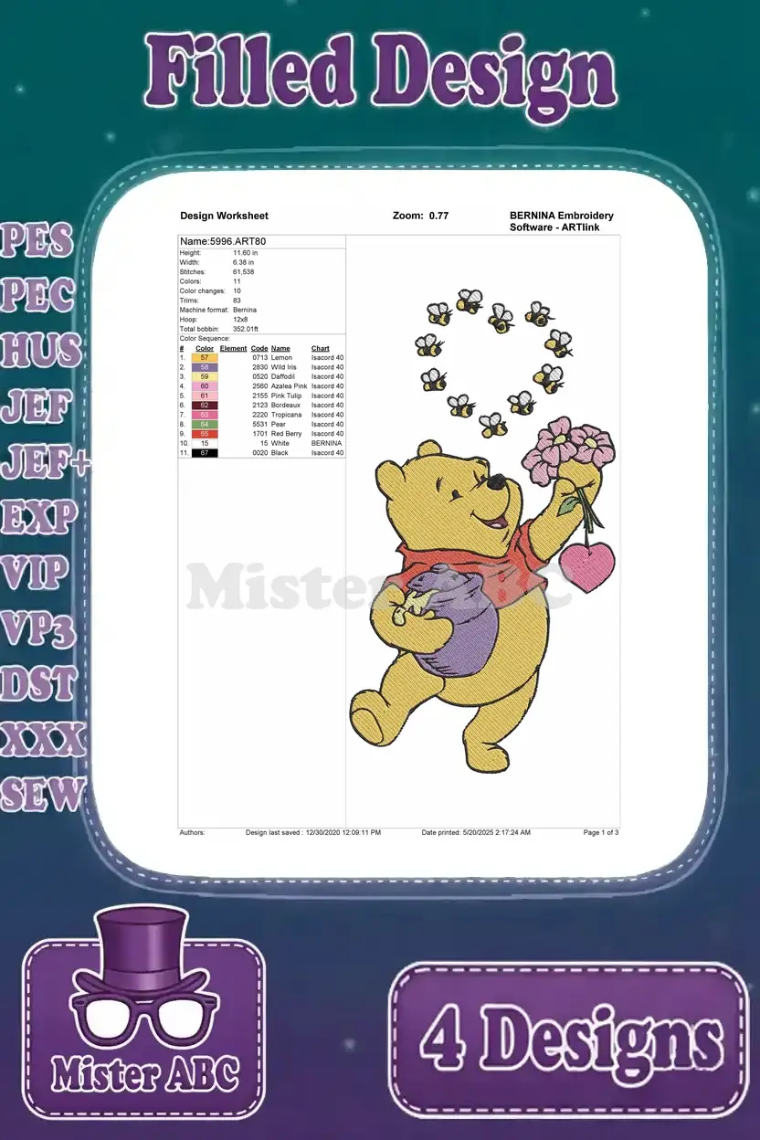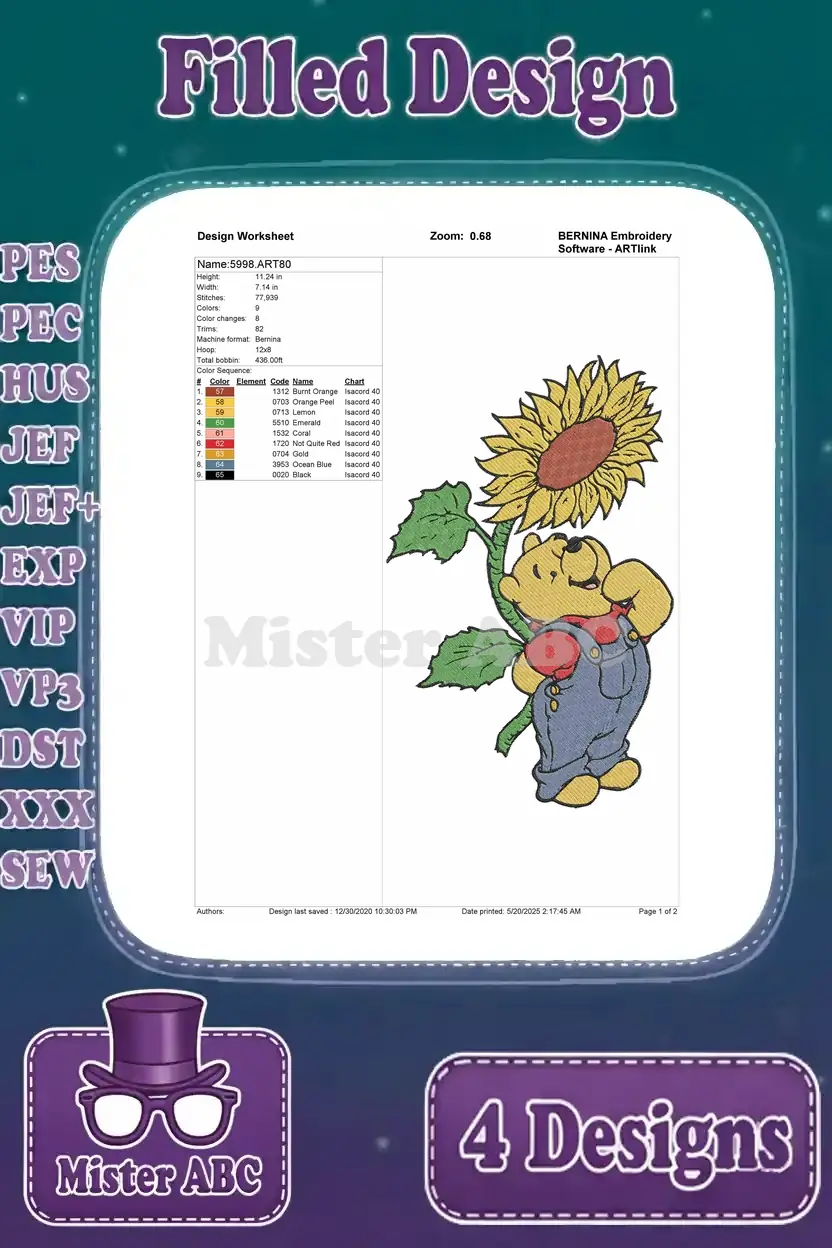 Winnie The Pooh Bear Flower Basket He Flowers Winter Scarf Sunflower – Filled Embroidery Design