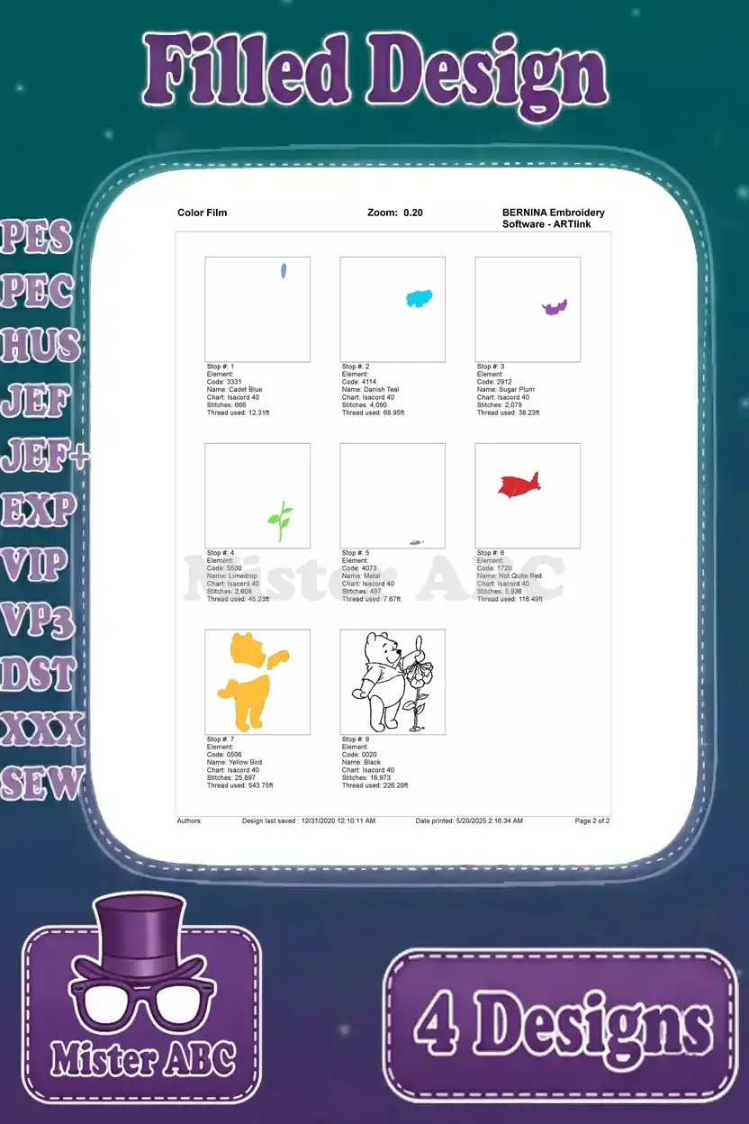 | Stitches | Colors | Thread Changes |