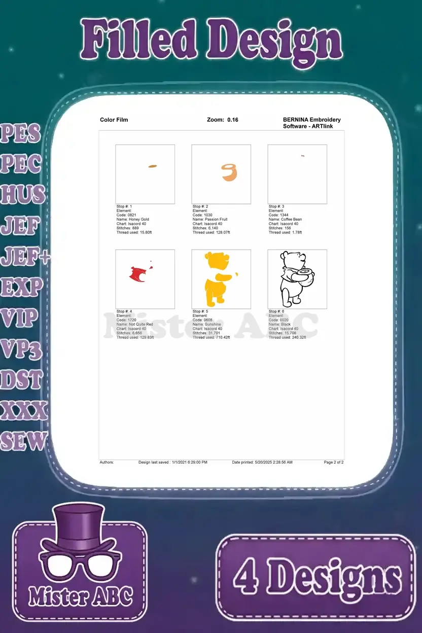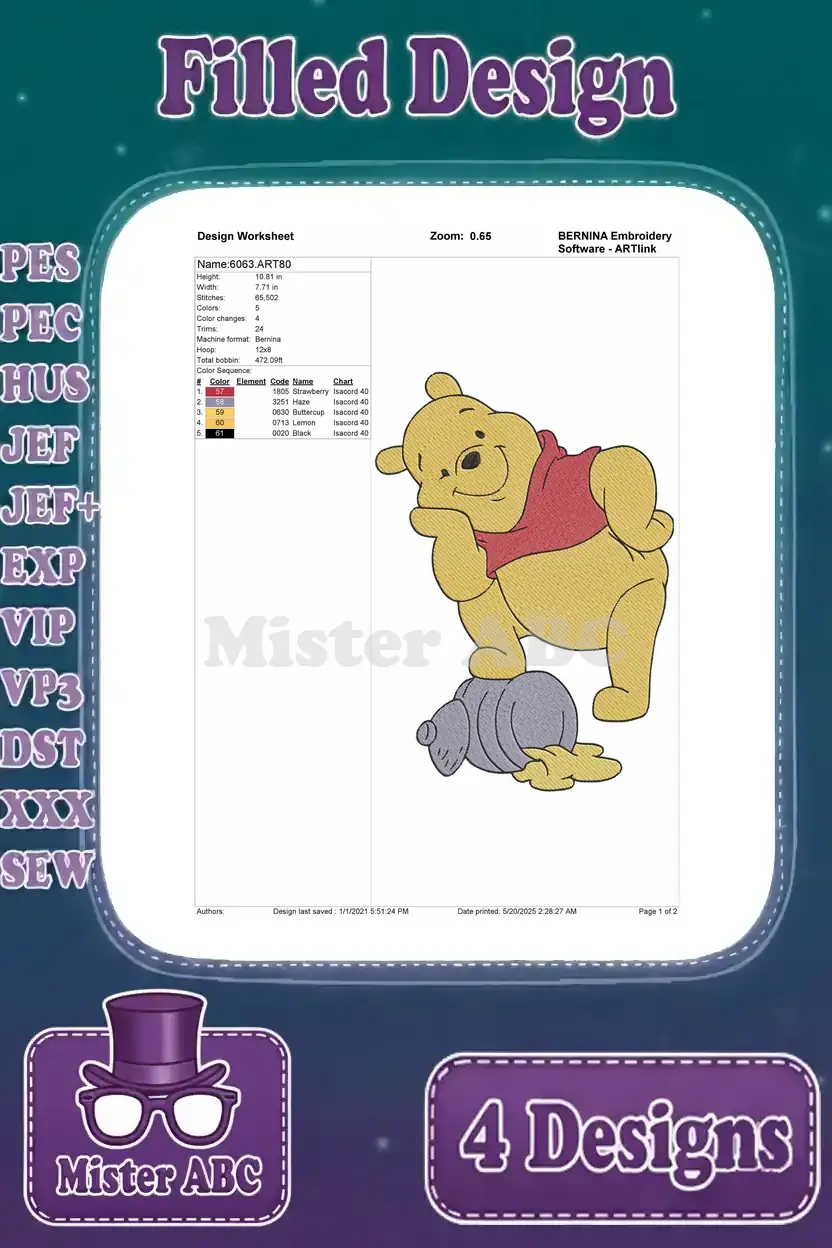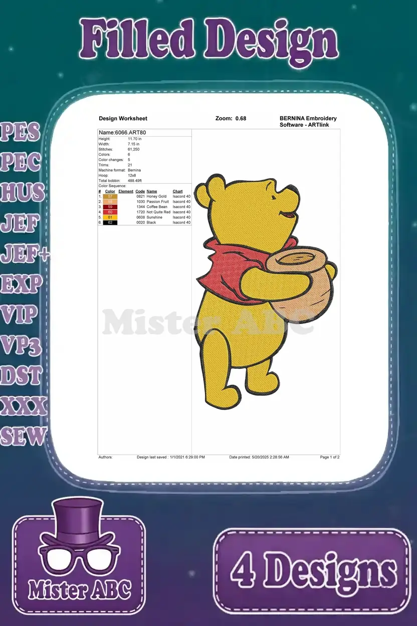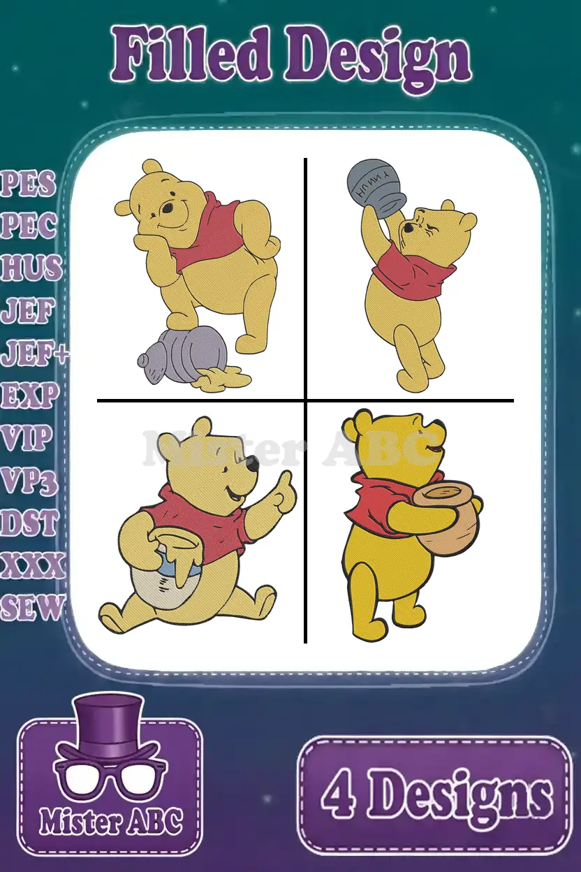 Winnie The Pooh Bear With Honey Pot Honey On Nose And Eating Honey Collection – Filled Embroidery Design