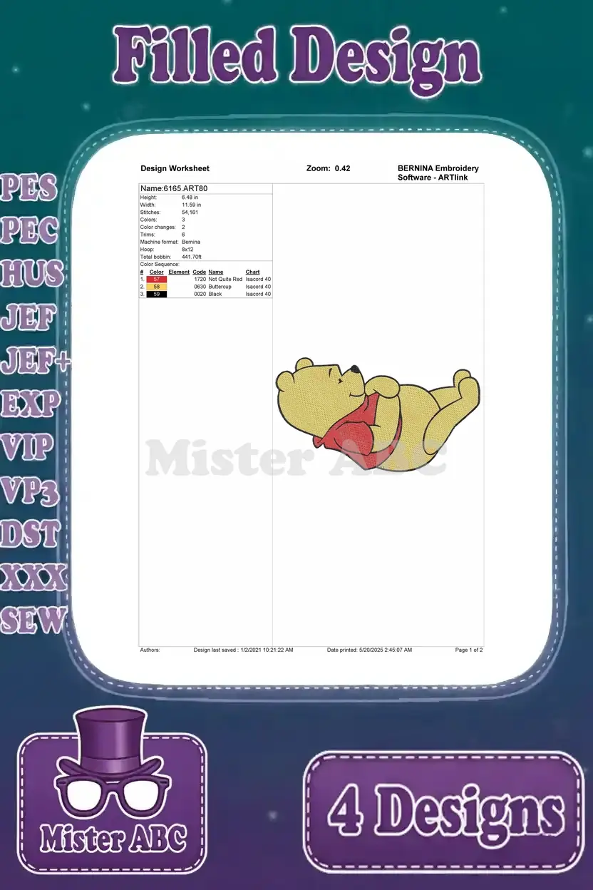 Winnie The Pooh Bear – Sitting Sleeping Umbrella Walking Poses – Rainy Day And Restful Pooh Bear Moments – Filled Embroidery Design