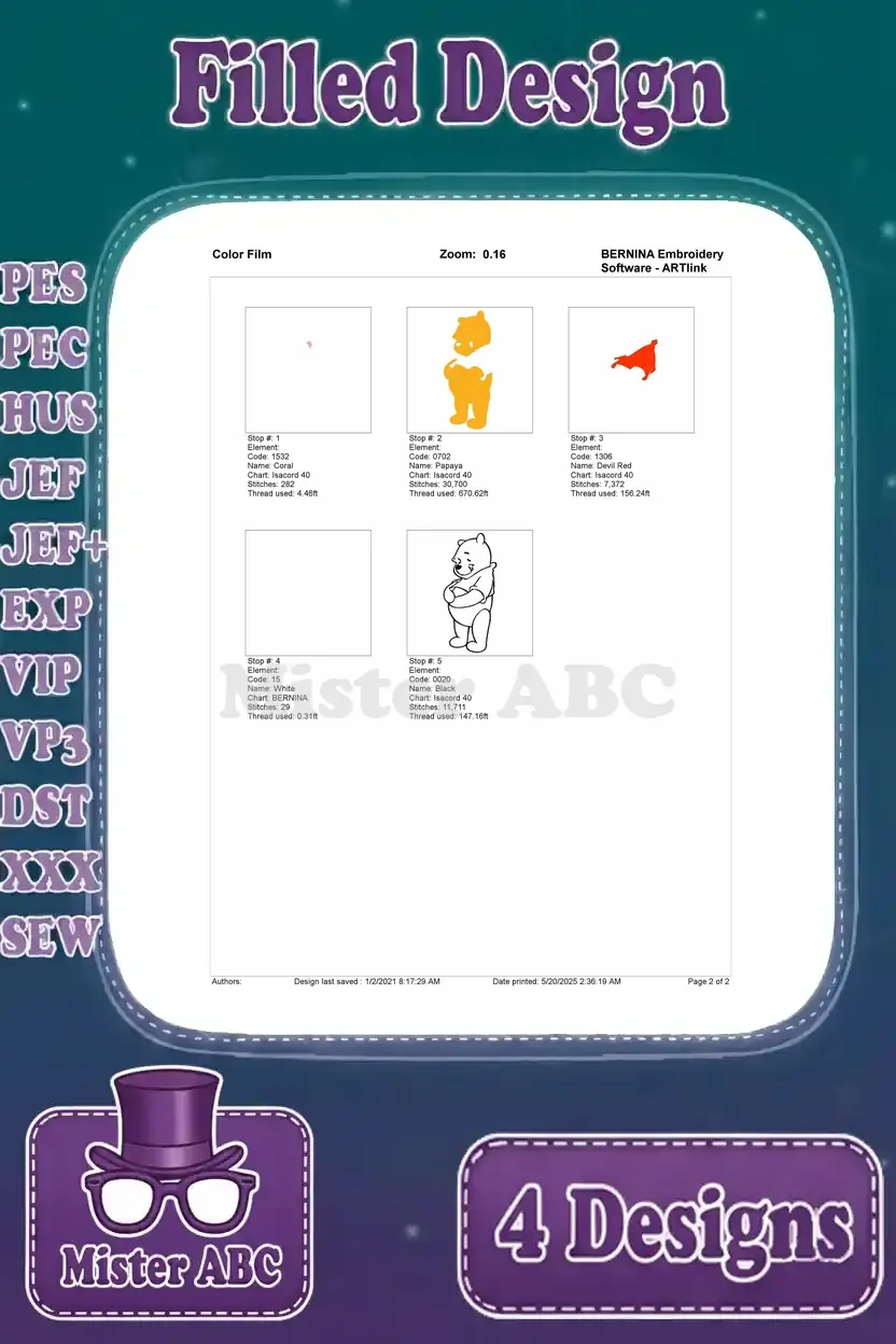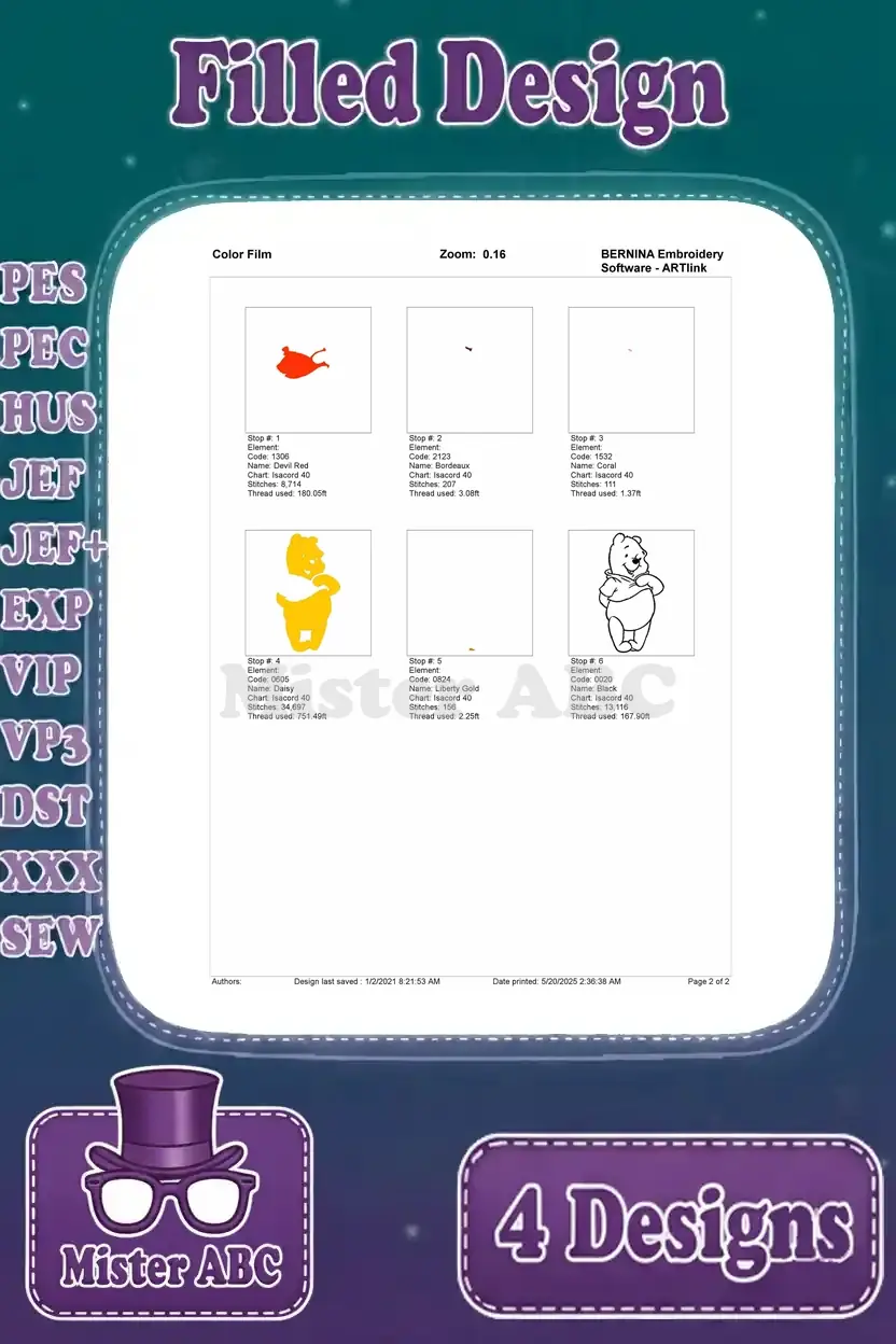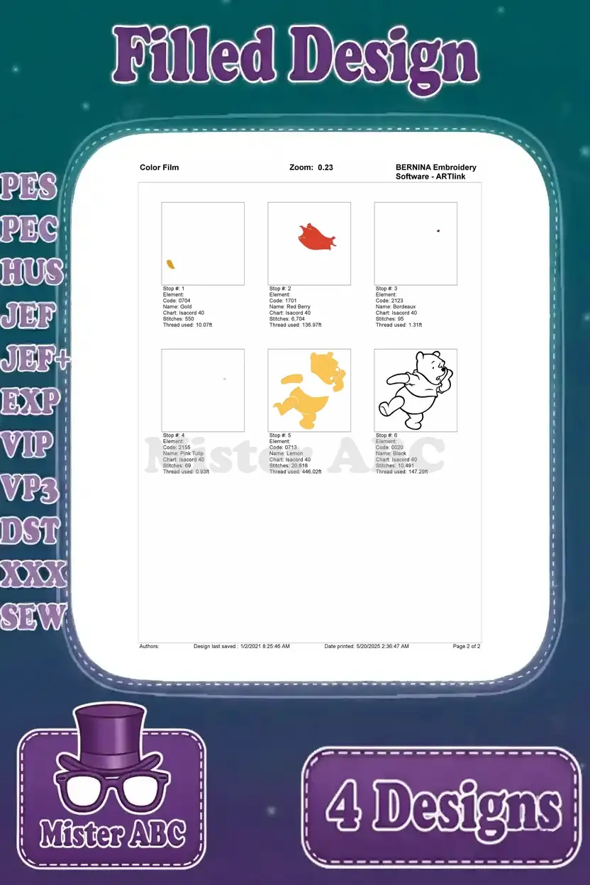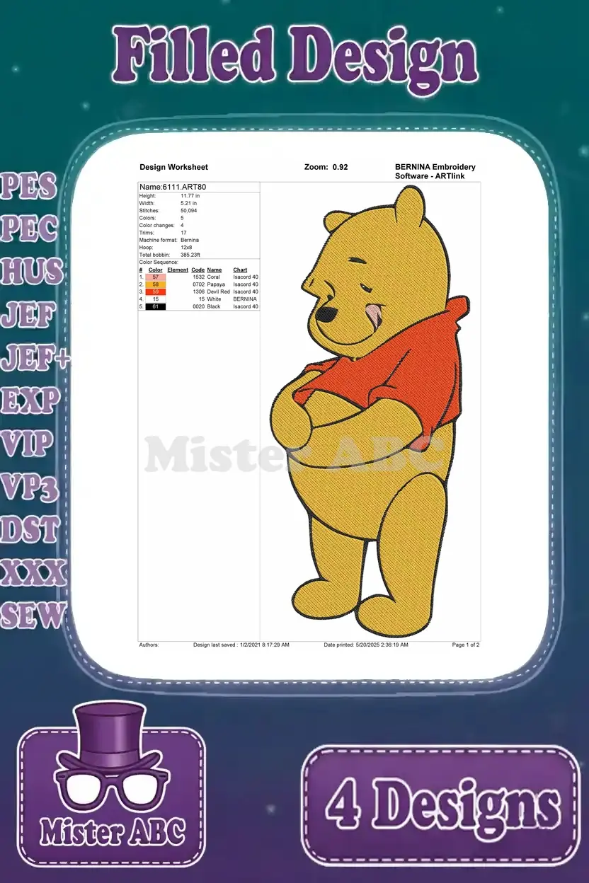 Winnie The Pooh Bear Various Classic Standing Sitting Waving And Dancing Poses – Filled Embroidery Design