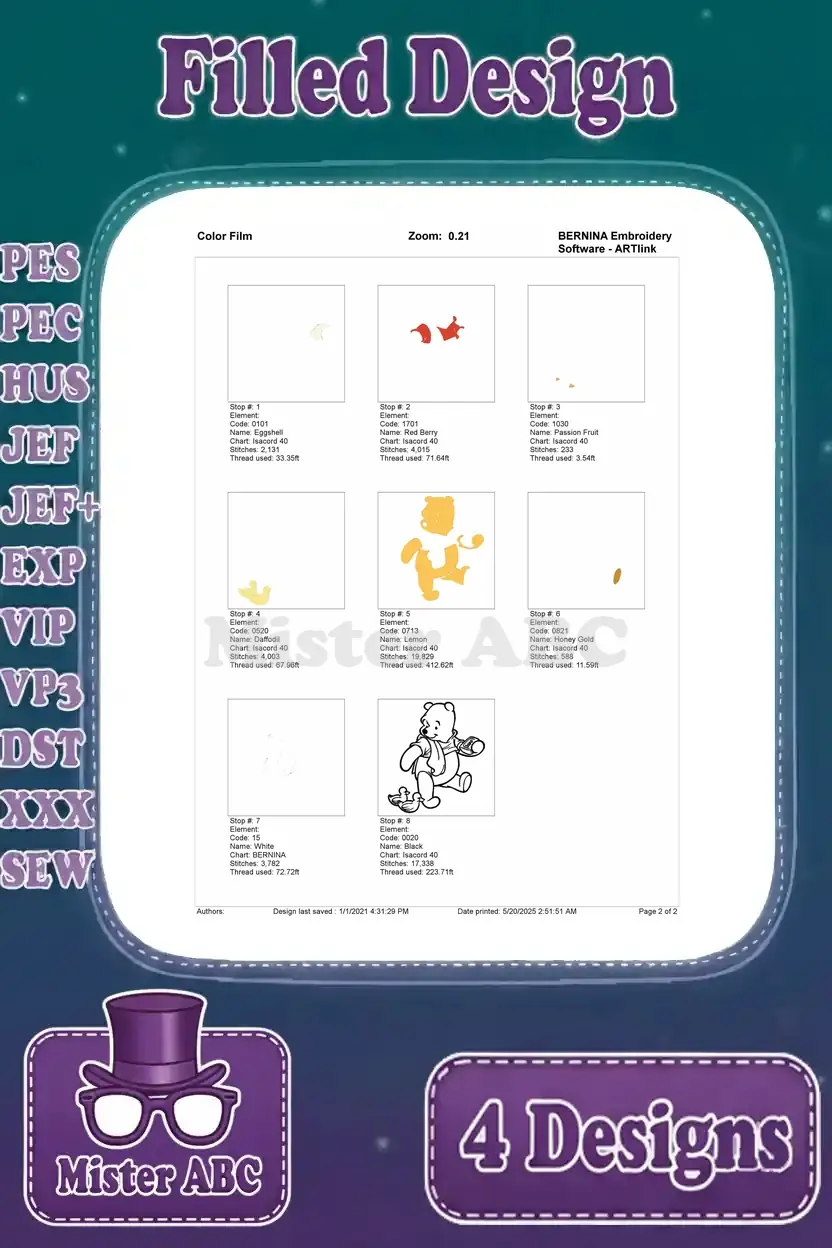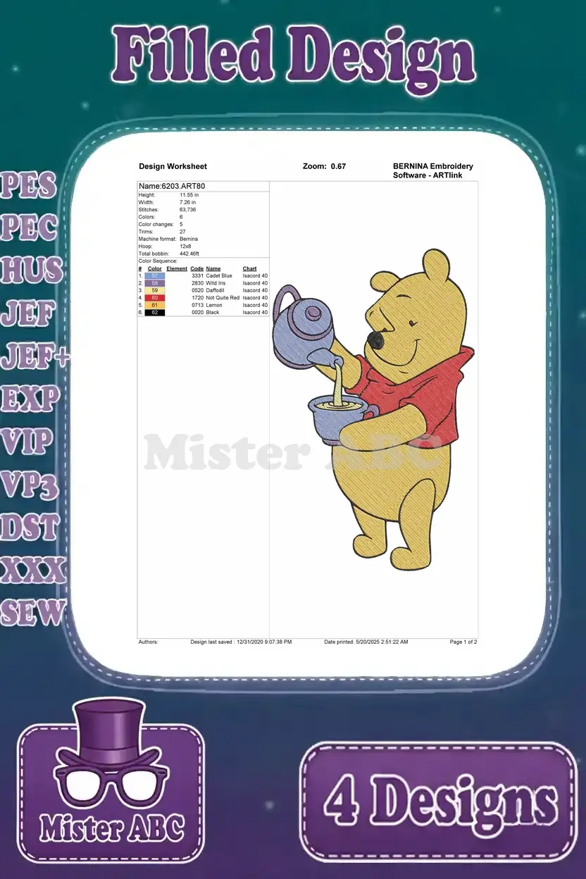 Winnie The Pooh Bear – Watering Waving Excited With Duckling – Gentle And Happy Pooh Bear With Friends – Filled Embroidery Design