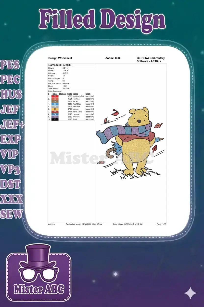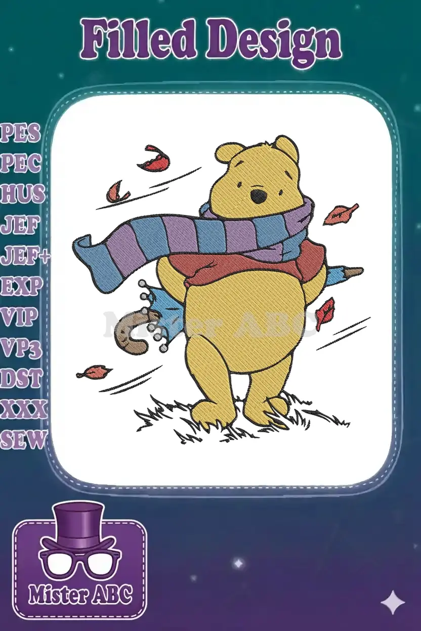 Winnie the Pooh Blustery Autumn Day Embroidery Designs with Scarf