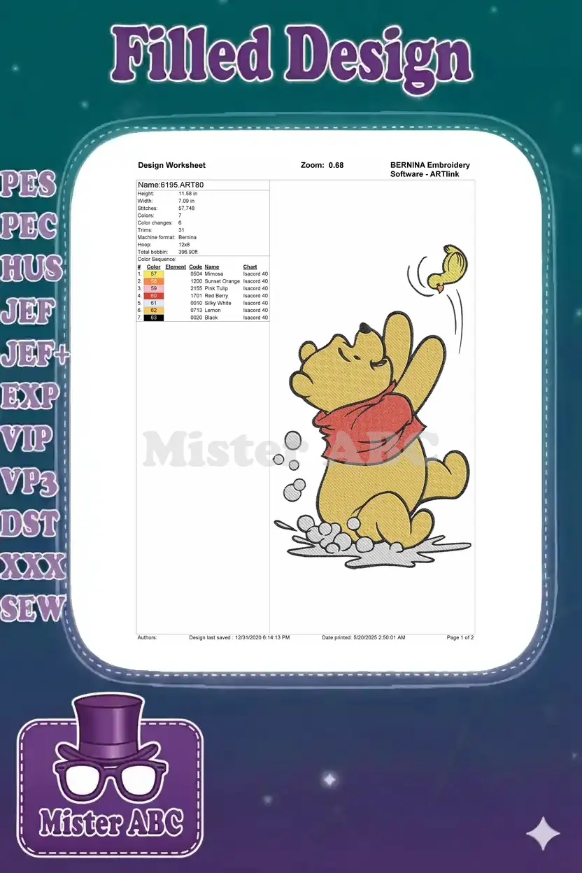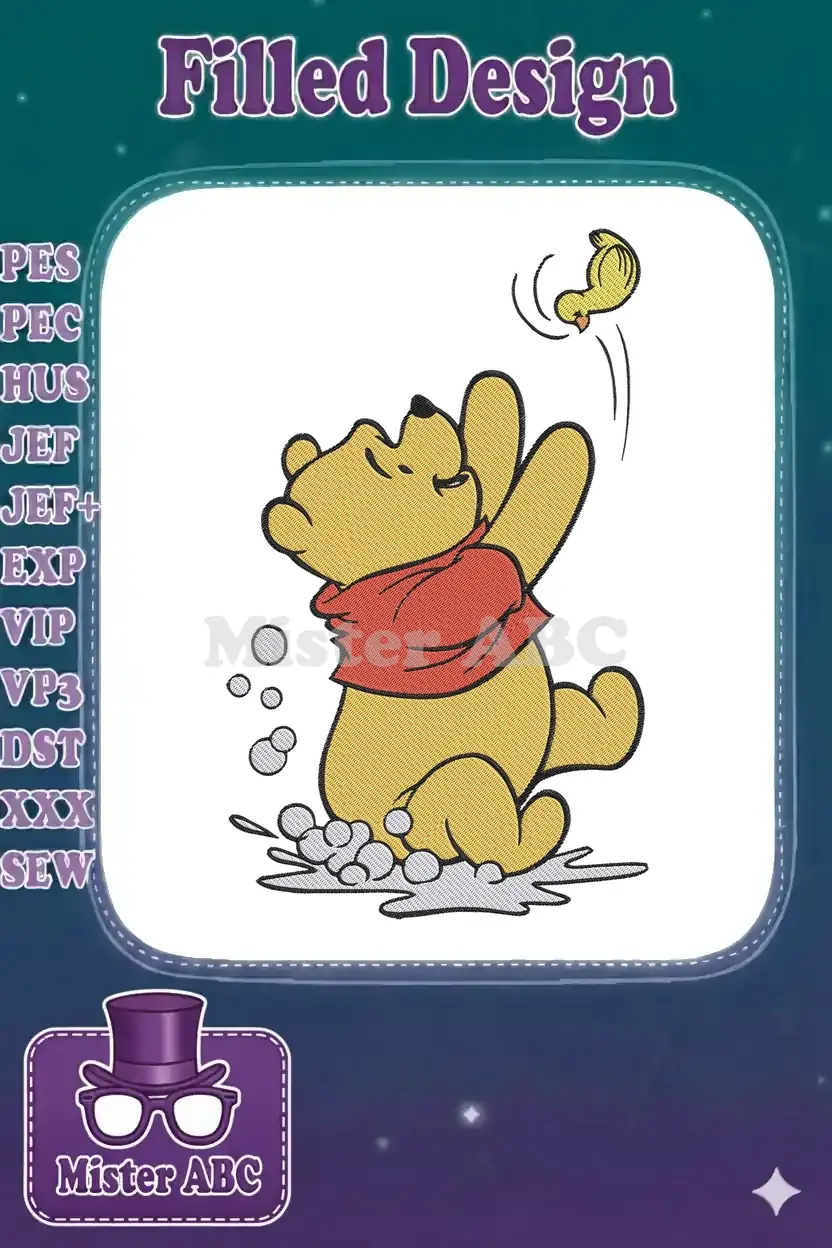 Winnie the Pooh bubbly bath with little bird embroidery designs