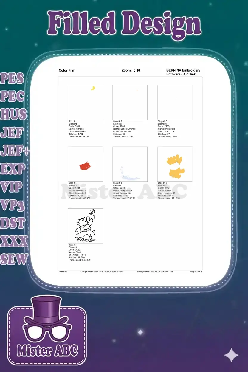 | Stitches | Colors | Thread Changes |
