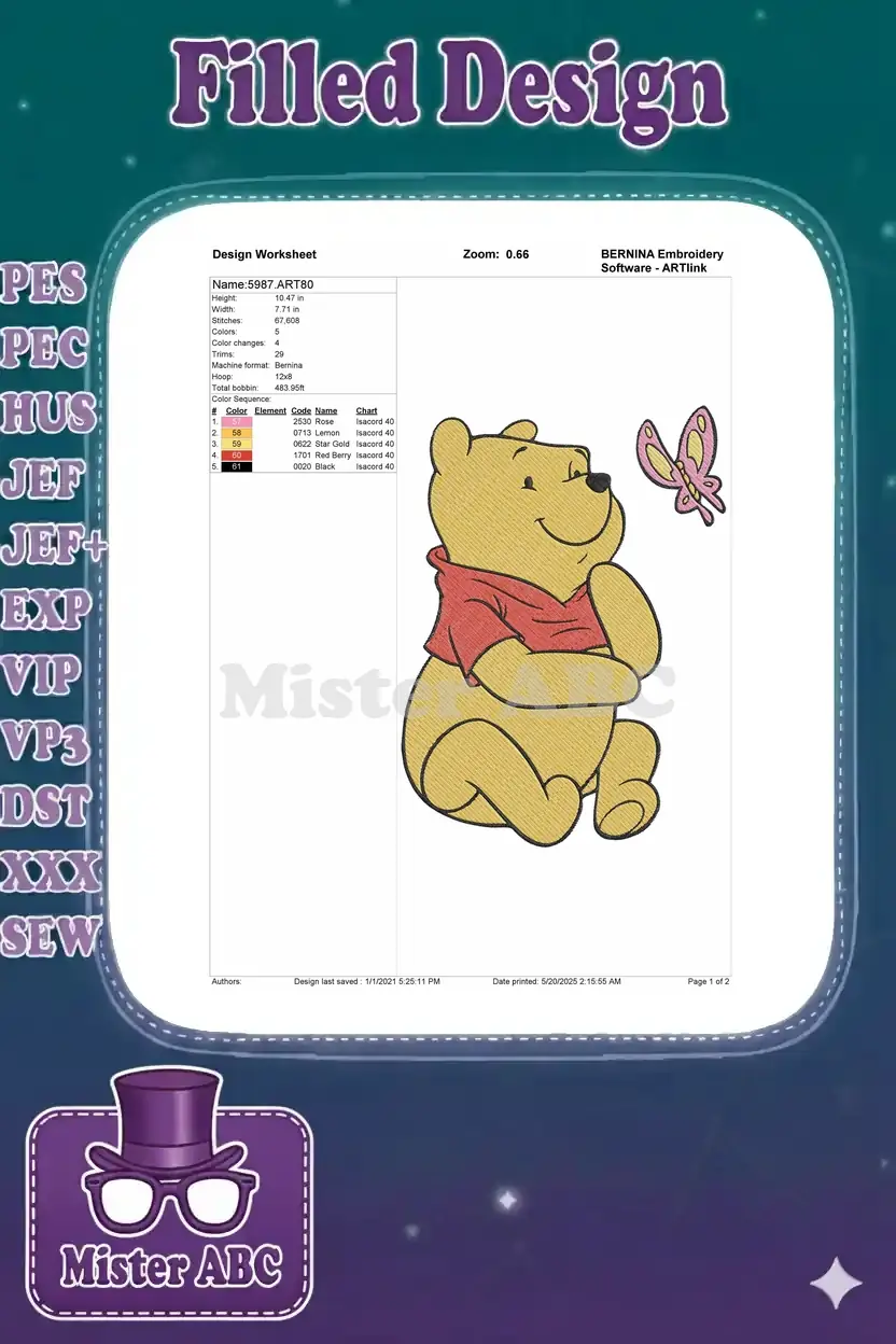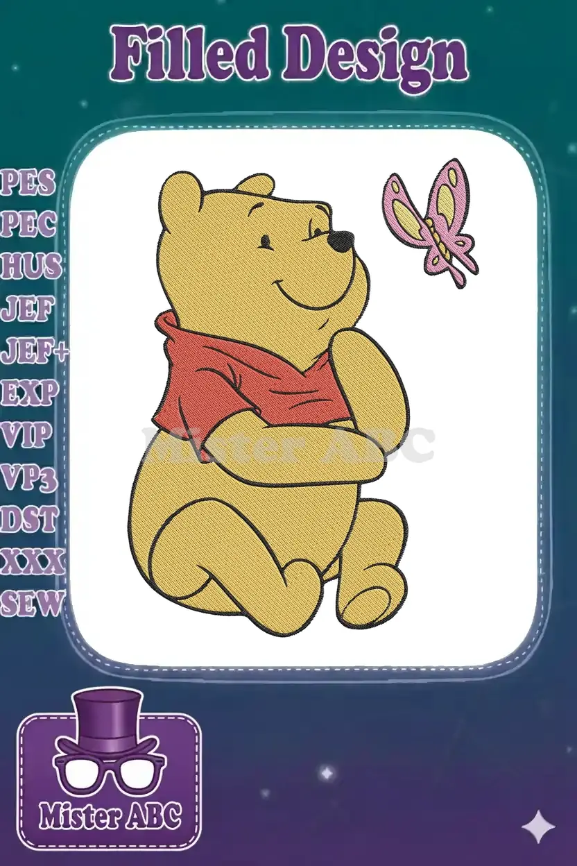 Winnie the Pooh and Butterfly Cartoon Embroidery Designs for Kids