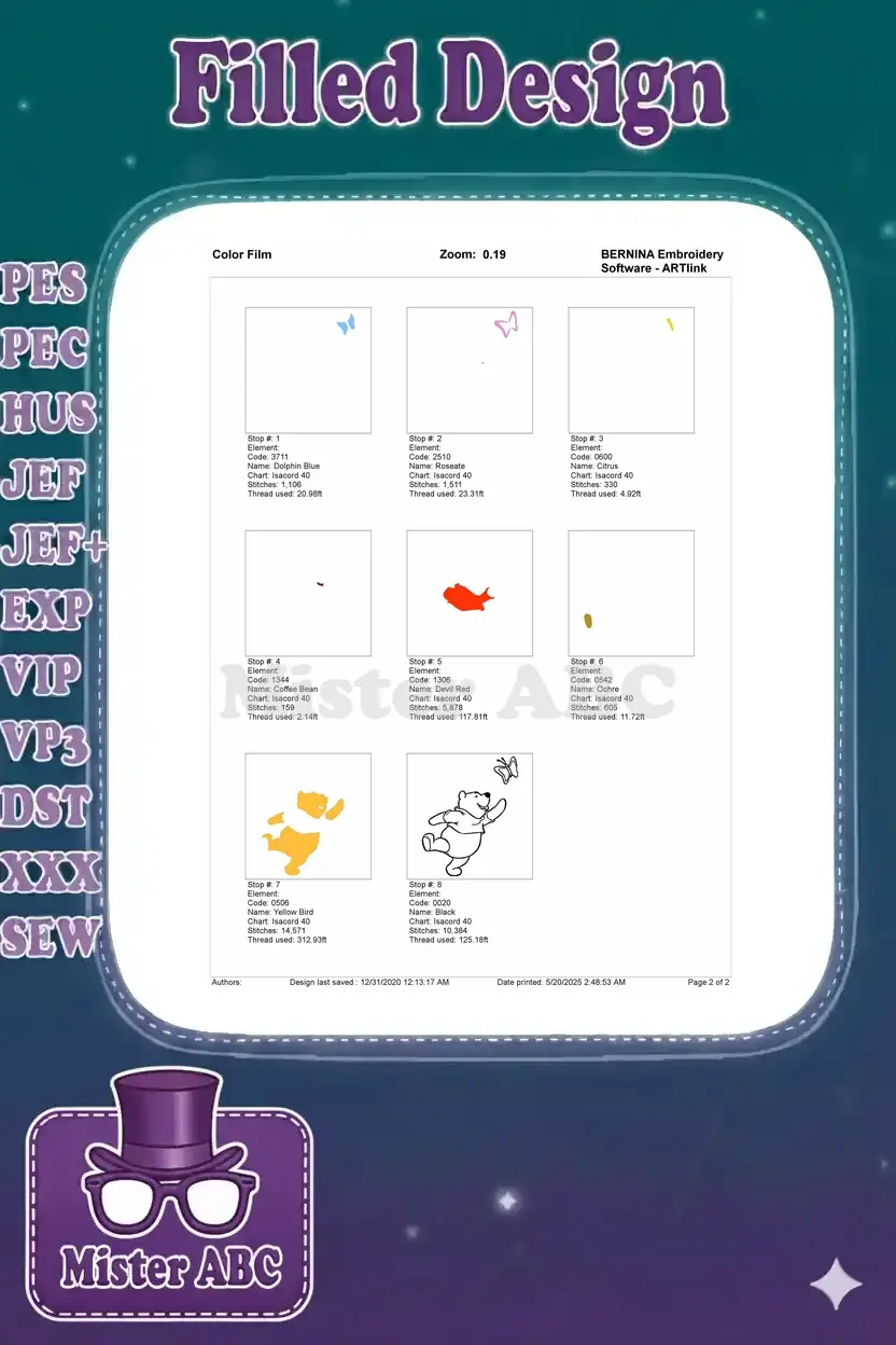 Capture the joy of Winnie the Pooh reaching for a butterfly with this delightful embroidery design. Perfect for children’s items.