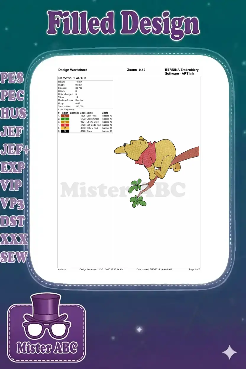 Charming Winnie the Pooh embroidery design, perfect for adding a touch of classic Disney magic to any project.
