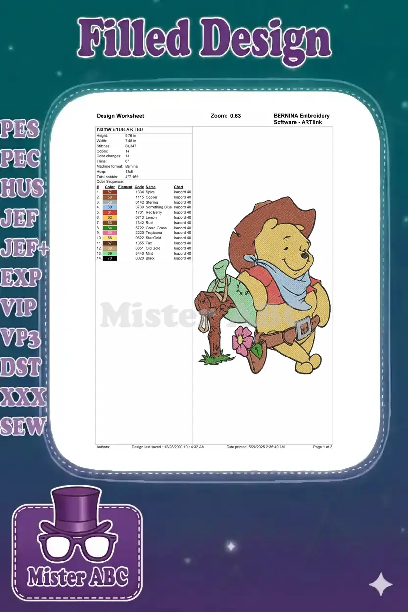 Winnie the Pooh Cowboy Western Adventure embroidery designs for kids