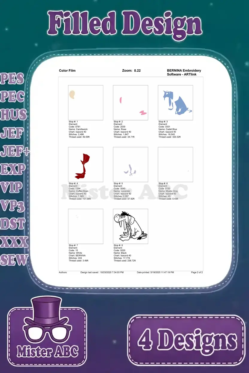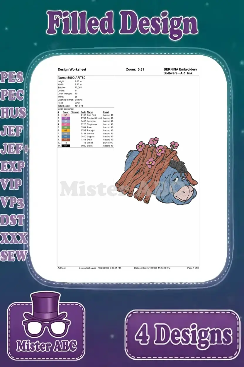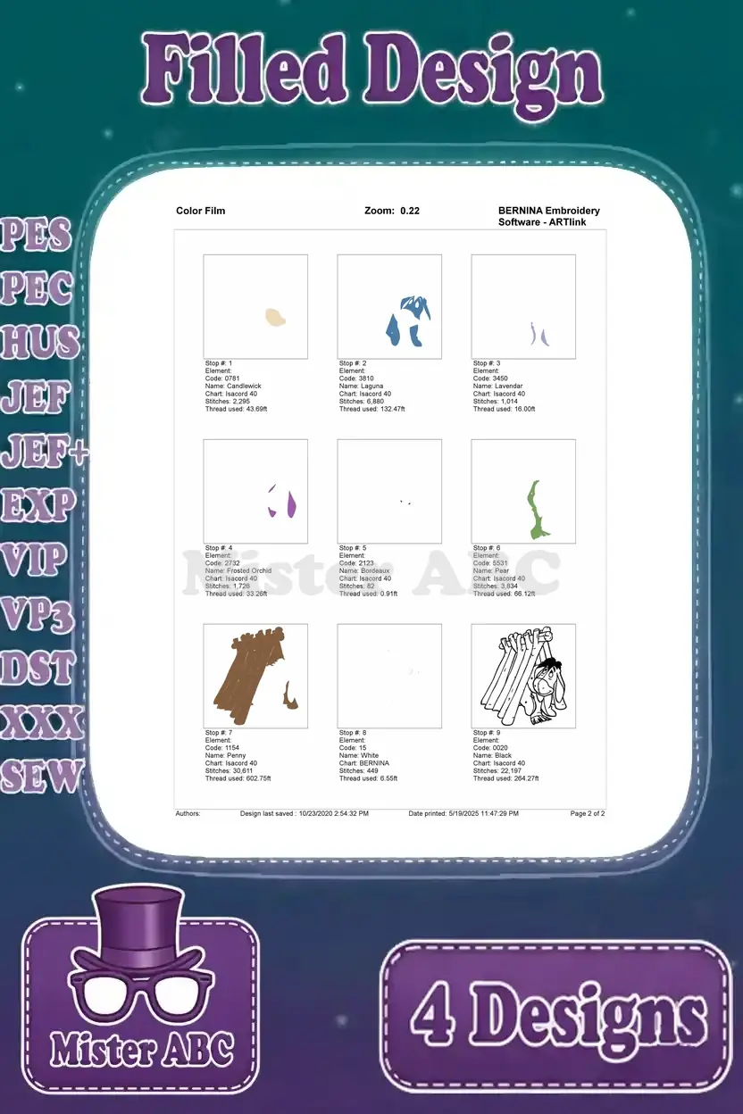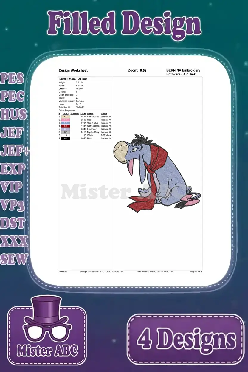 Winnie The Pooh – Eeyore Dancing With Flower And Red Scarf – Building His Stick House – Cute Donkey – Filled Embroidery Design