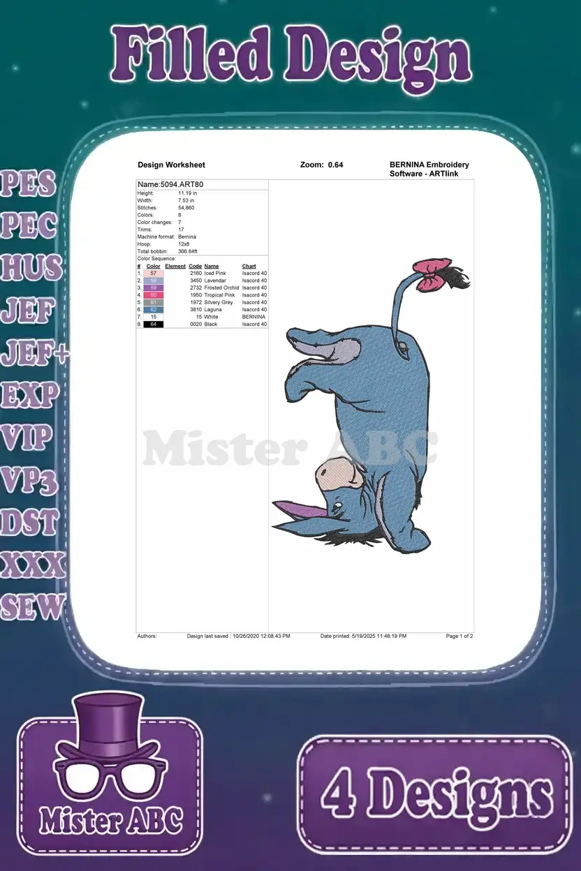 Winnie The Pooh – Eeyore With Honey Pot And Piglet – Eating Thistles With Butterfly – Hundred Acre Wood Life – Filled Embroidery Design