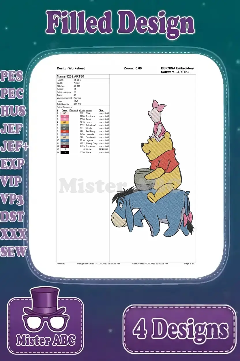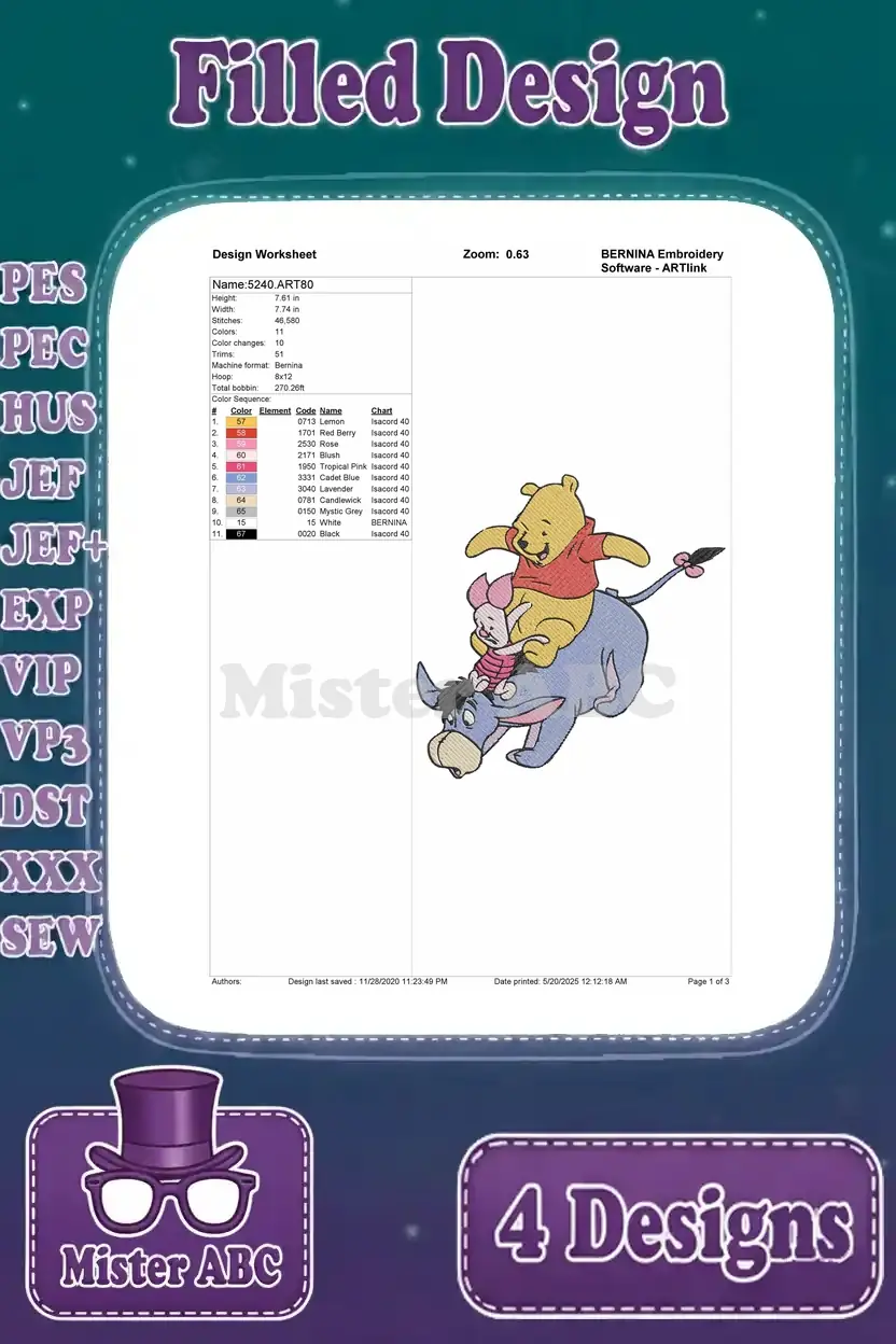 Winnie The Pooh Eeyore Piglet Tigger Christopher Robin Kanga Roo Stacking Friends – Filled Embroidery Design