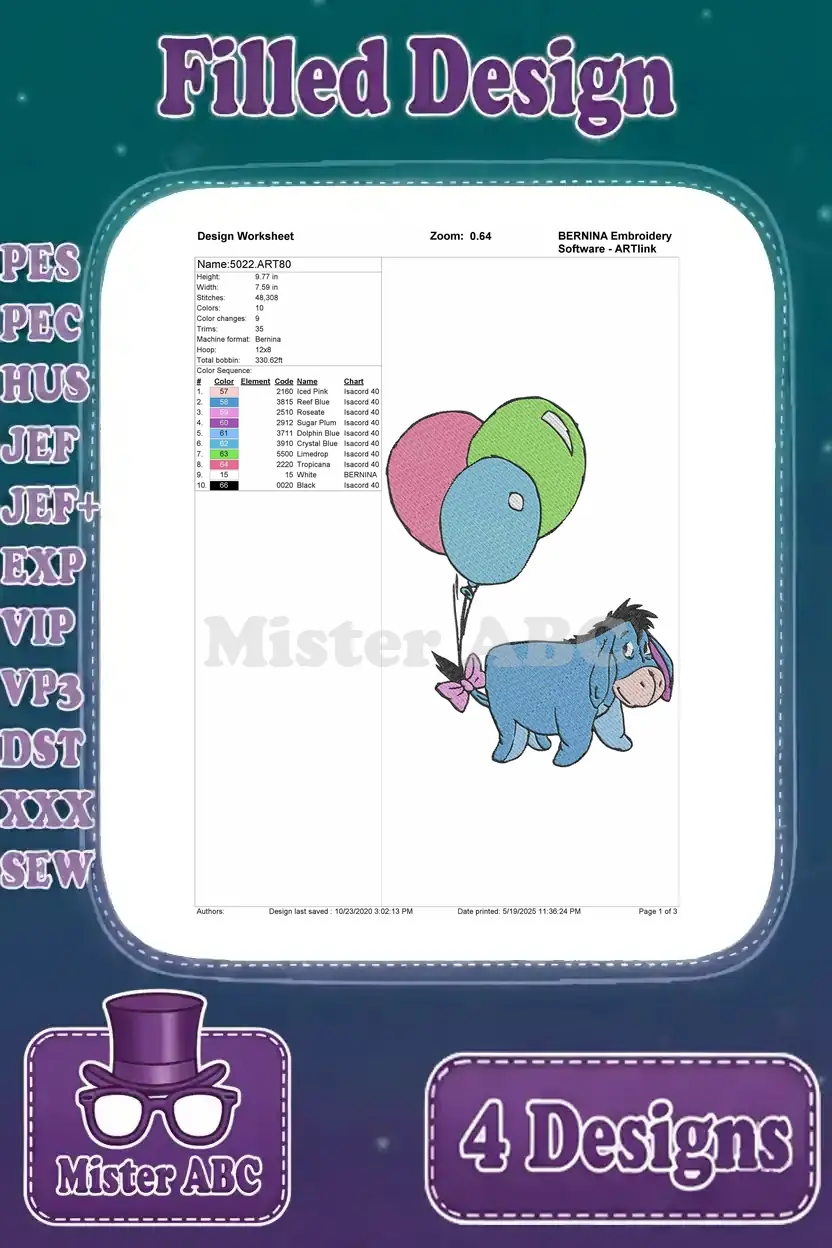 Winnie The Pooh – Eeyore The Sad Donkey With Colorful Balloons And Sleeping Peacefully – Gentle Giant – Filled Embroidery Design