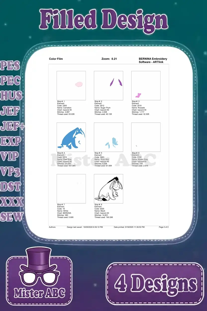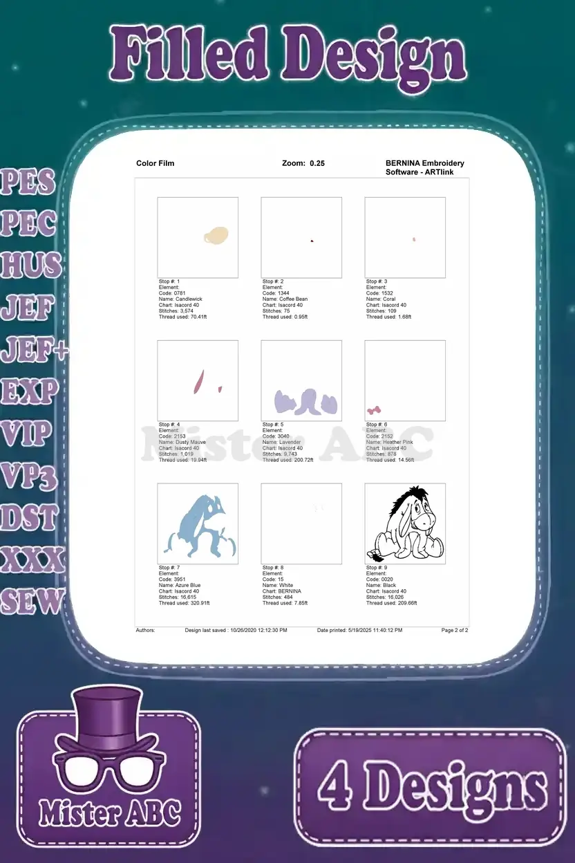 | Stitches | Colors | Thread Changes |